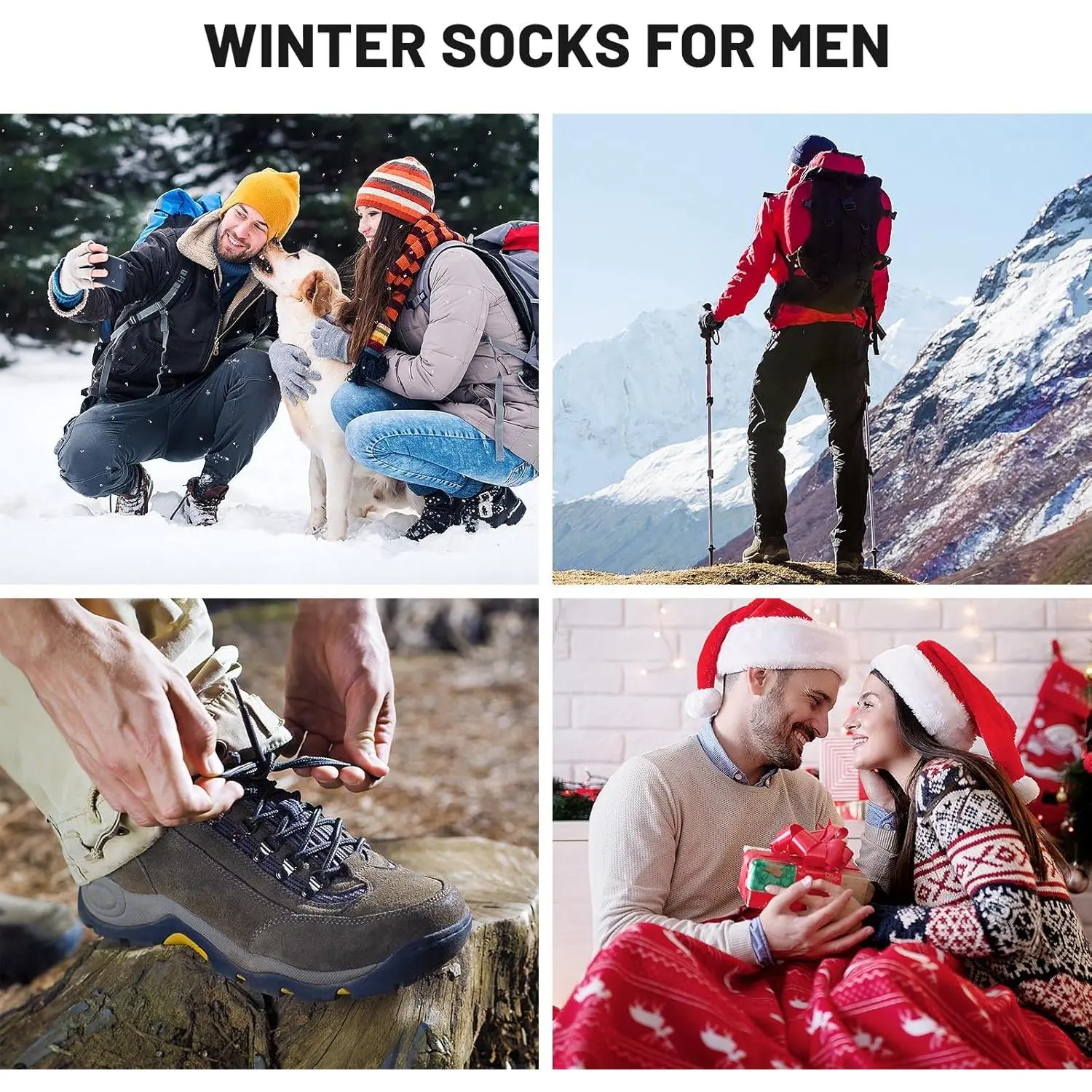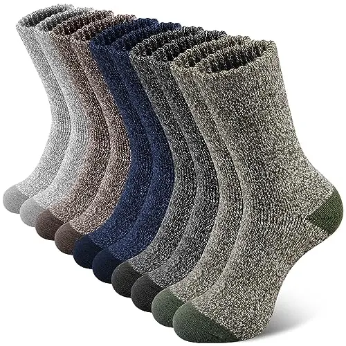 Men's 5 Pairs Merino Wool Socks - Super Thick Thermal Hiking Socks for Cold Weather, Warm Breathable Moisture-Wicking Cushioned Socks Perfect for Outdoor Activities, Winter Sports, and Daily Comfort