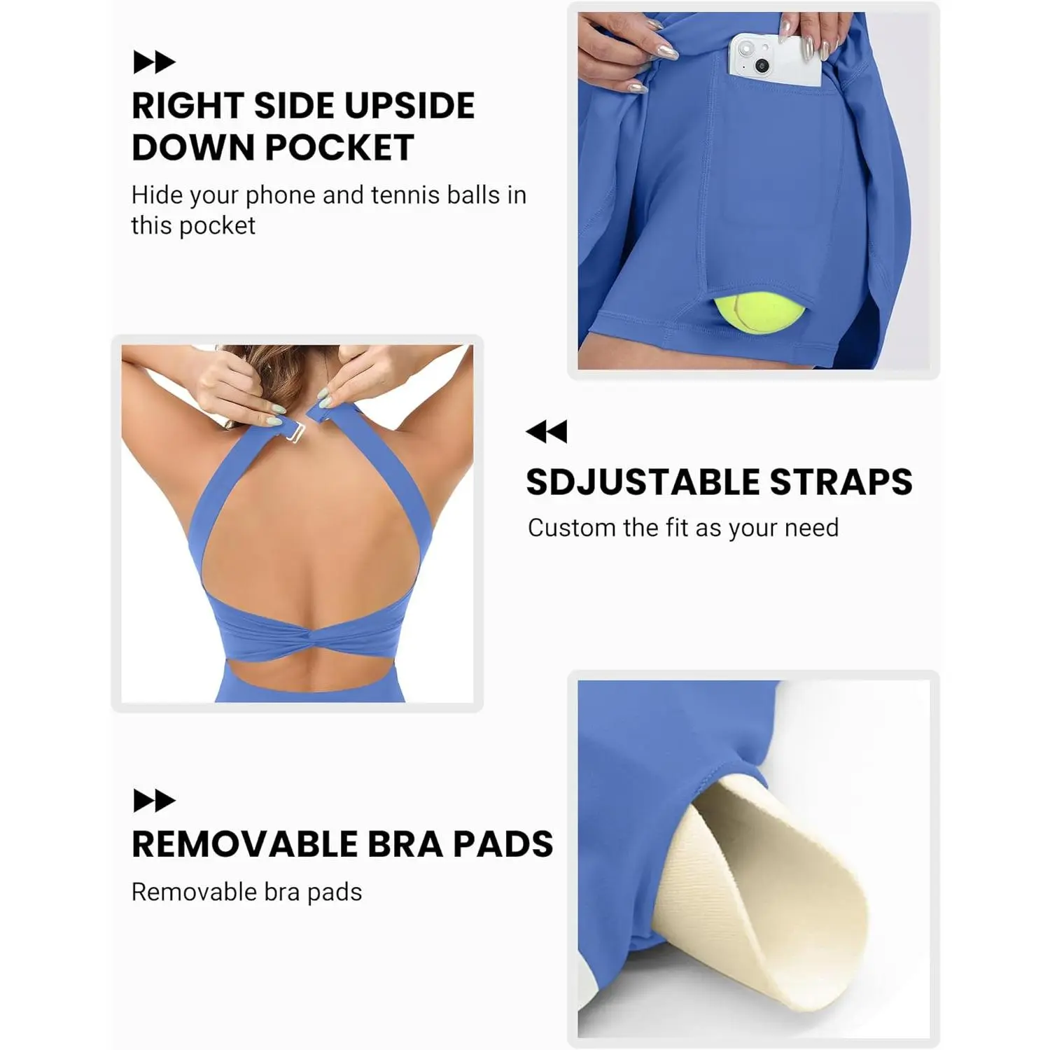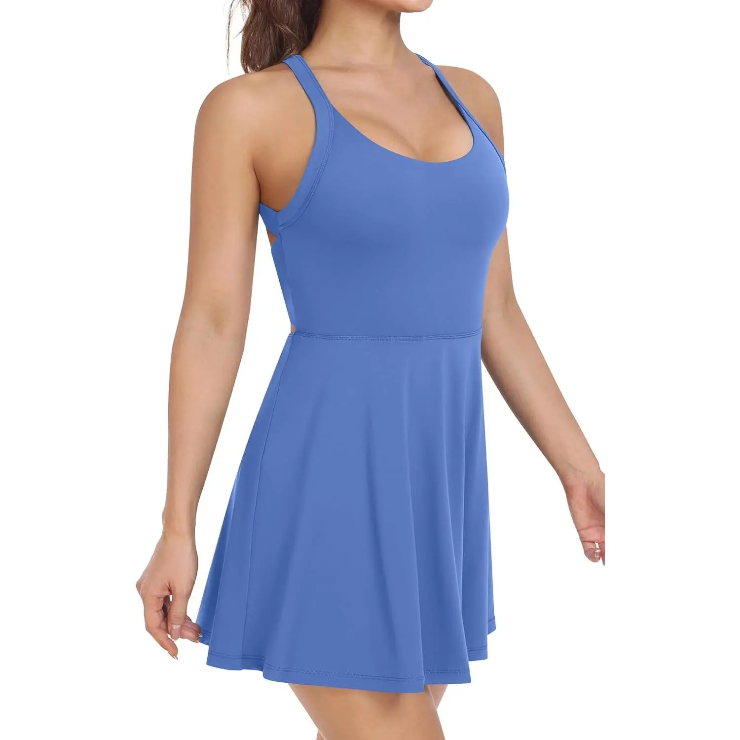 SCUSTY Women's Summer Sleeveless Mini Dress with Built-in Shorts V Neck Spaghetti Straps Athletic Shorts Tennis Dress with Pockets