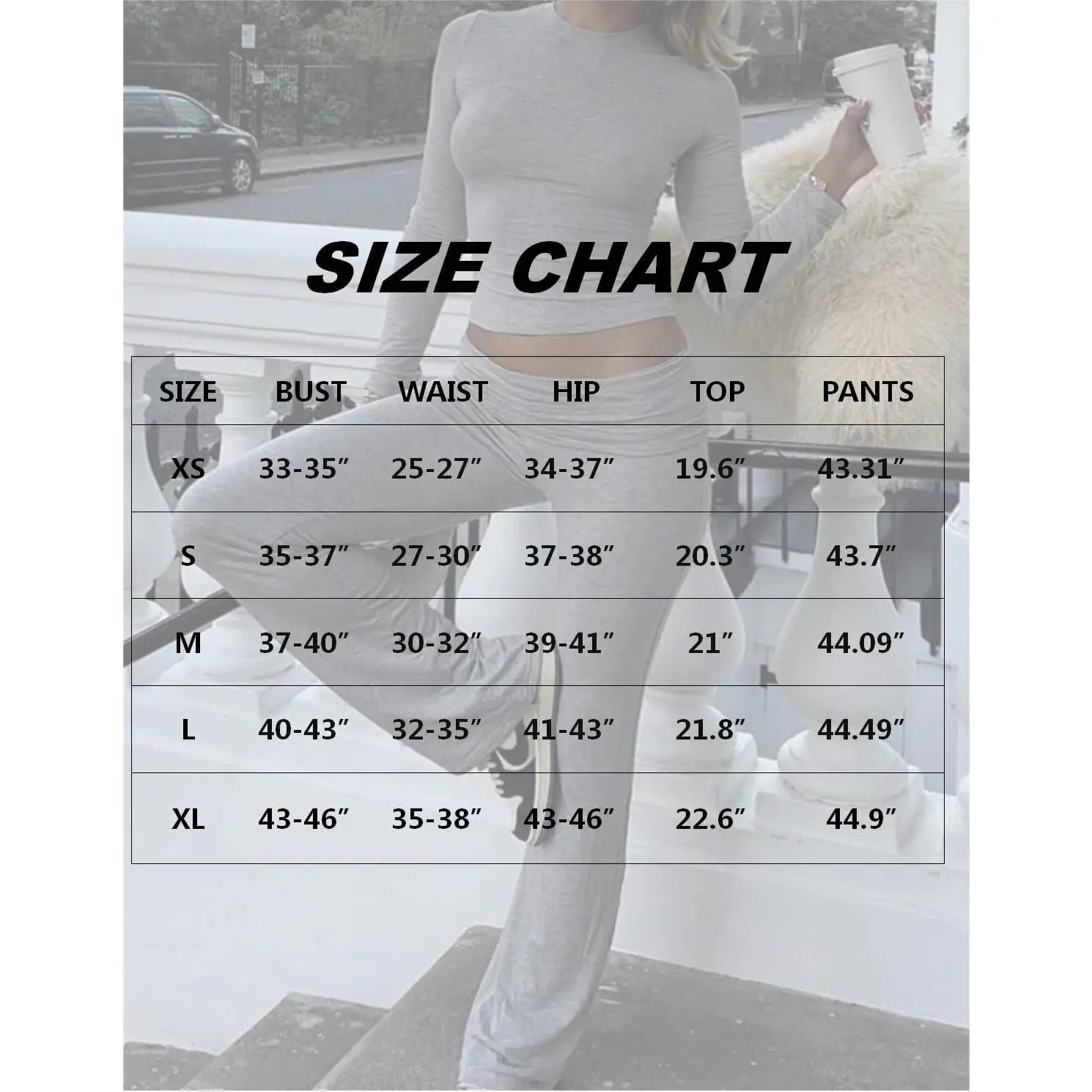 Women's 2 Piece Outfits Foldover Flare Pants Long Sleeve Crew Neck T-shirt Fitted Pajama Sets - Comfortable Lounge Wear Sleepwear Casual Home Outfit Soft Stretchy Fabric Perfect for Relaxing Vacation Daily Wear