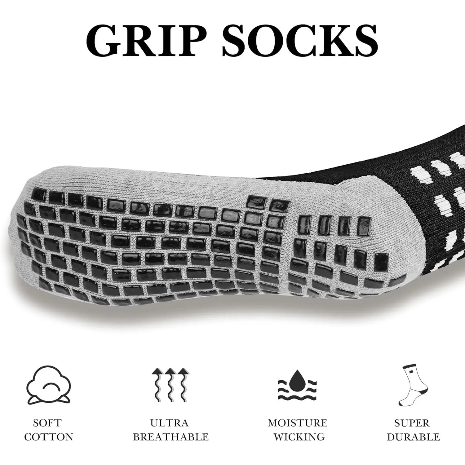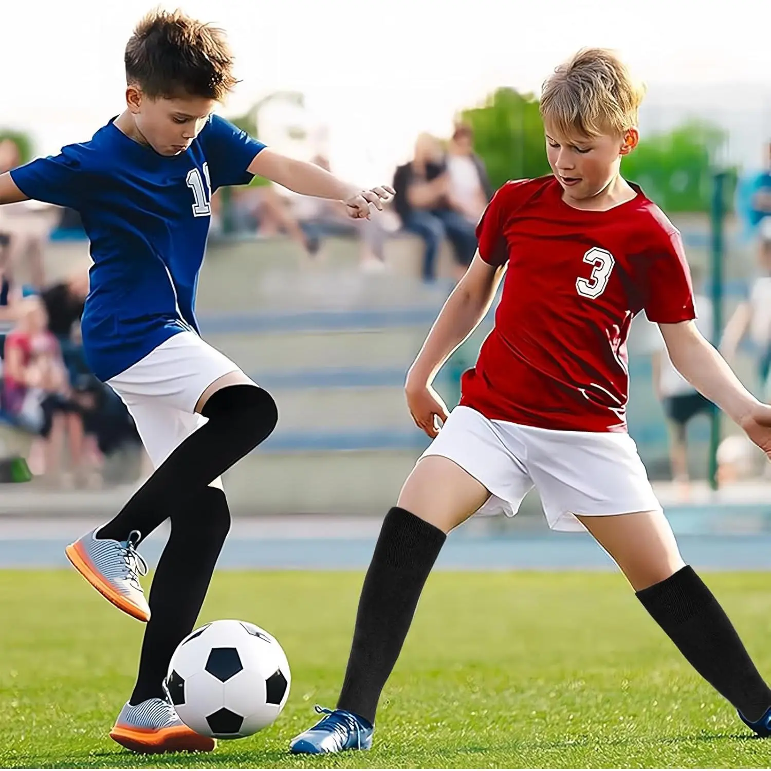 Kids Soccer Grip Socks (2 Pairs) - Anti Slip Non Slip Soccer Socks with Grip Pads for Boys Girls Age 6-9, Breathable Comfortable Athletic Sports Socks Perfect for Football Training, Practice, Match, Youth Children's Sports Accessories