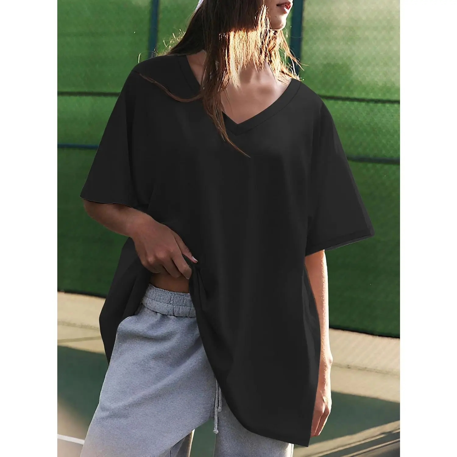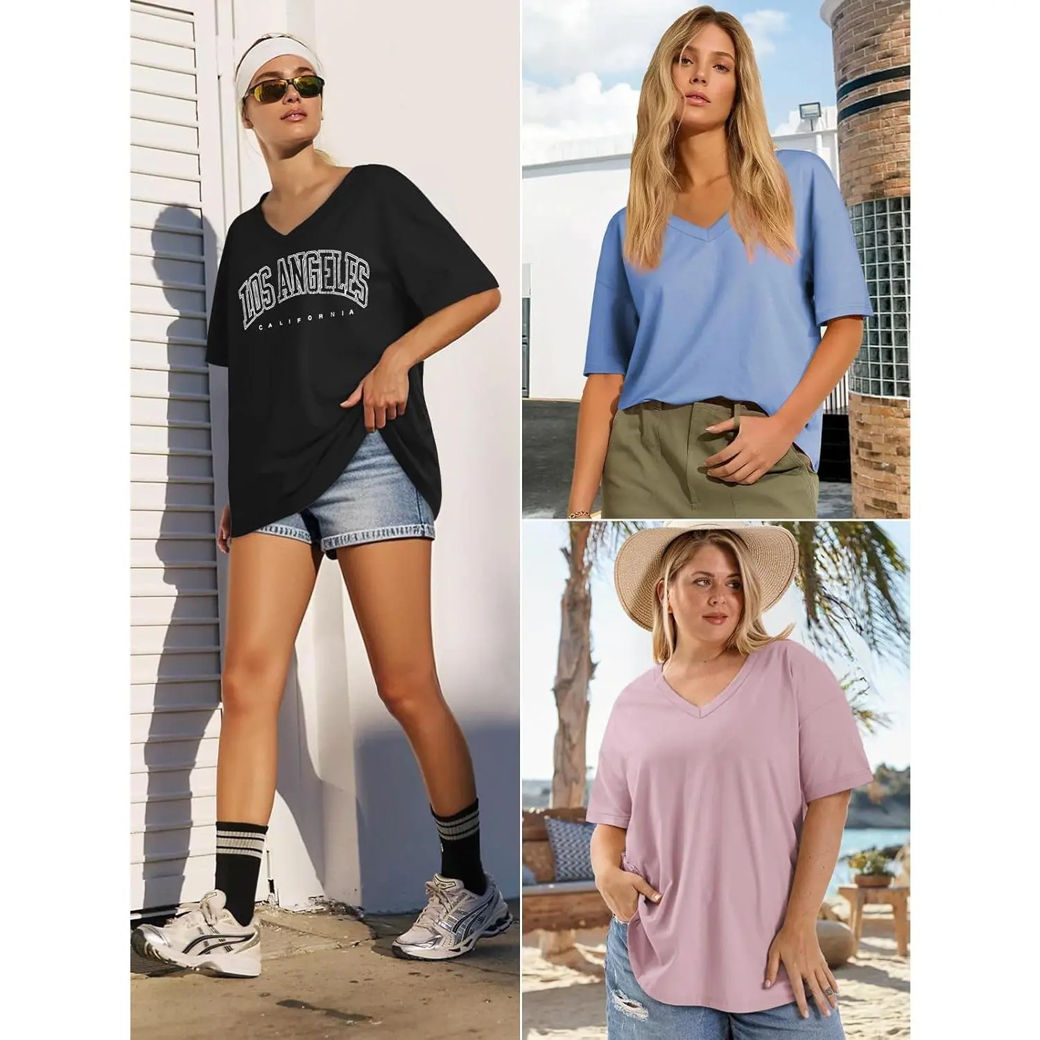 Women's Oversized V Neck Plus Size T-Shirt - Basic Tee for Spring Summer Workout Gym Clothes Beach Vacation Casual Tops Comfortable Breathable Cotton Essential Clothing