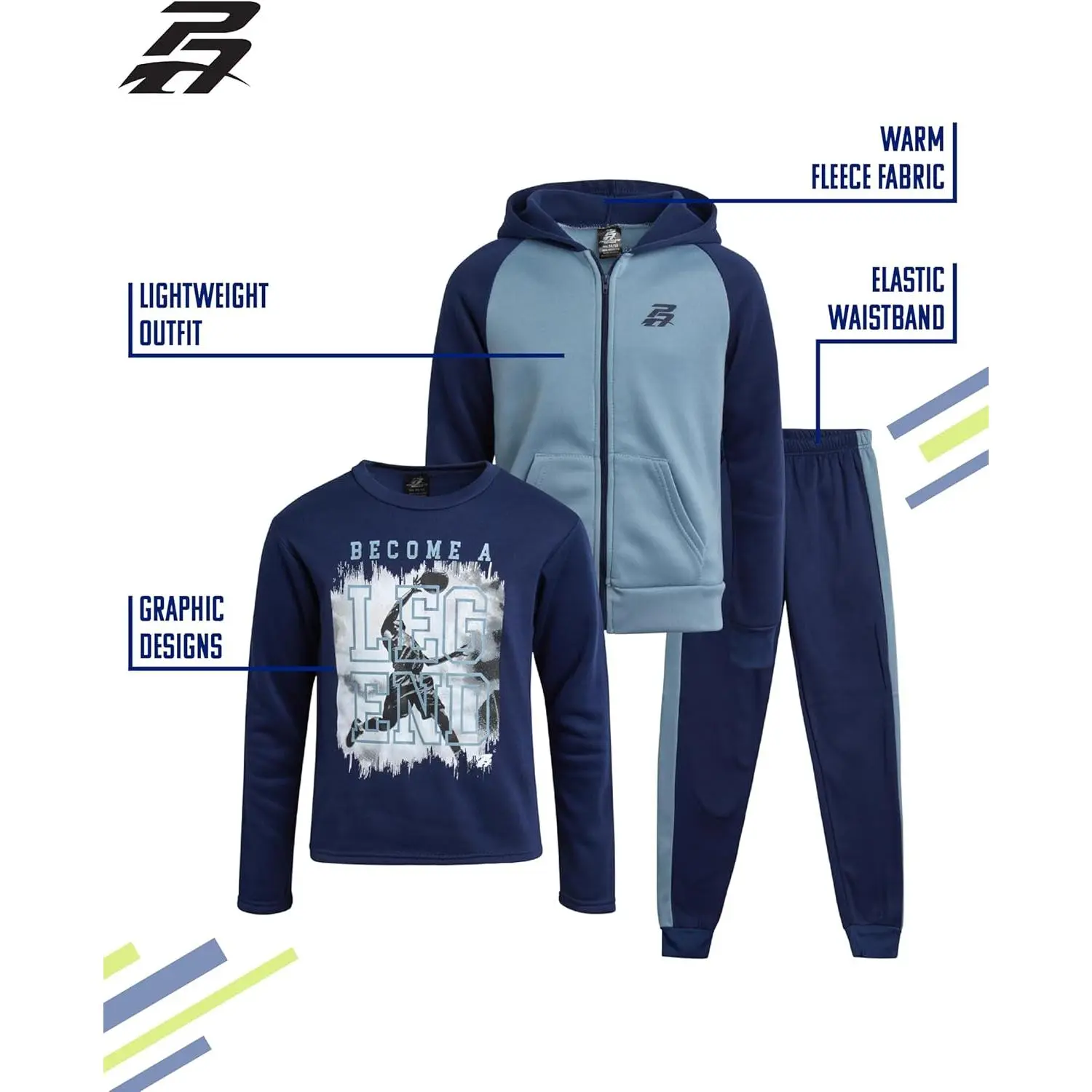 Boys' 3-Piece Tracksuit Set - Long Sleeve Graphic Tee, Fleece Zip-Up Hoodie, and Sweatpants for Active Kids, Comfortable Athletic Wear for Sports, School, and Casual Play