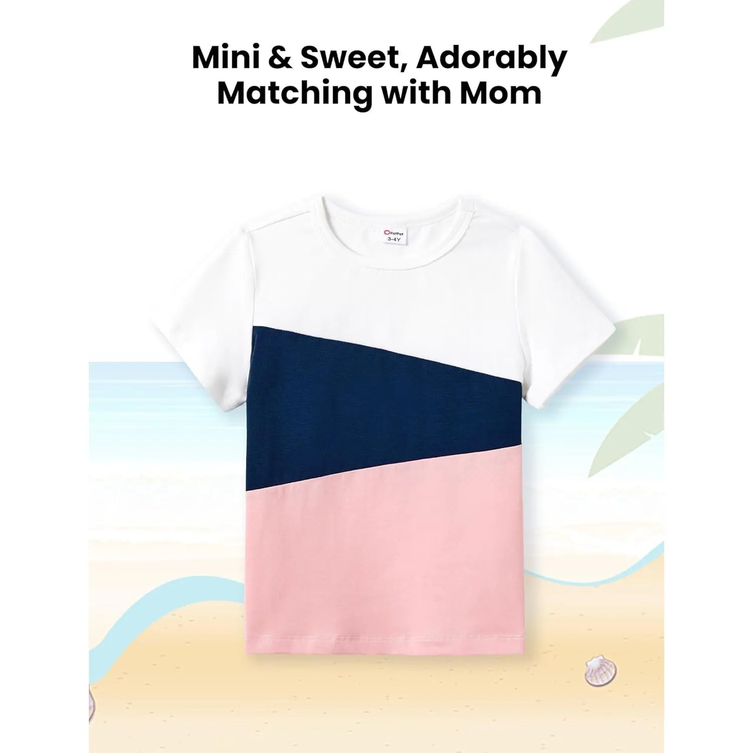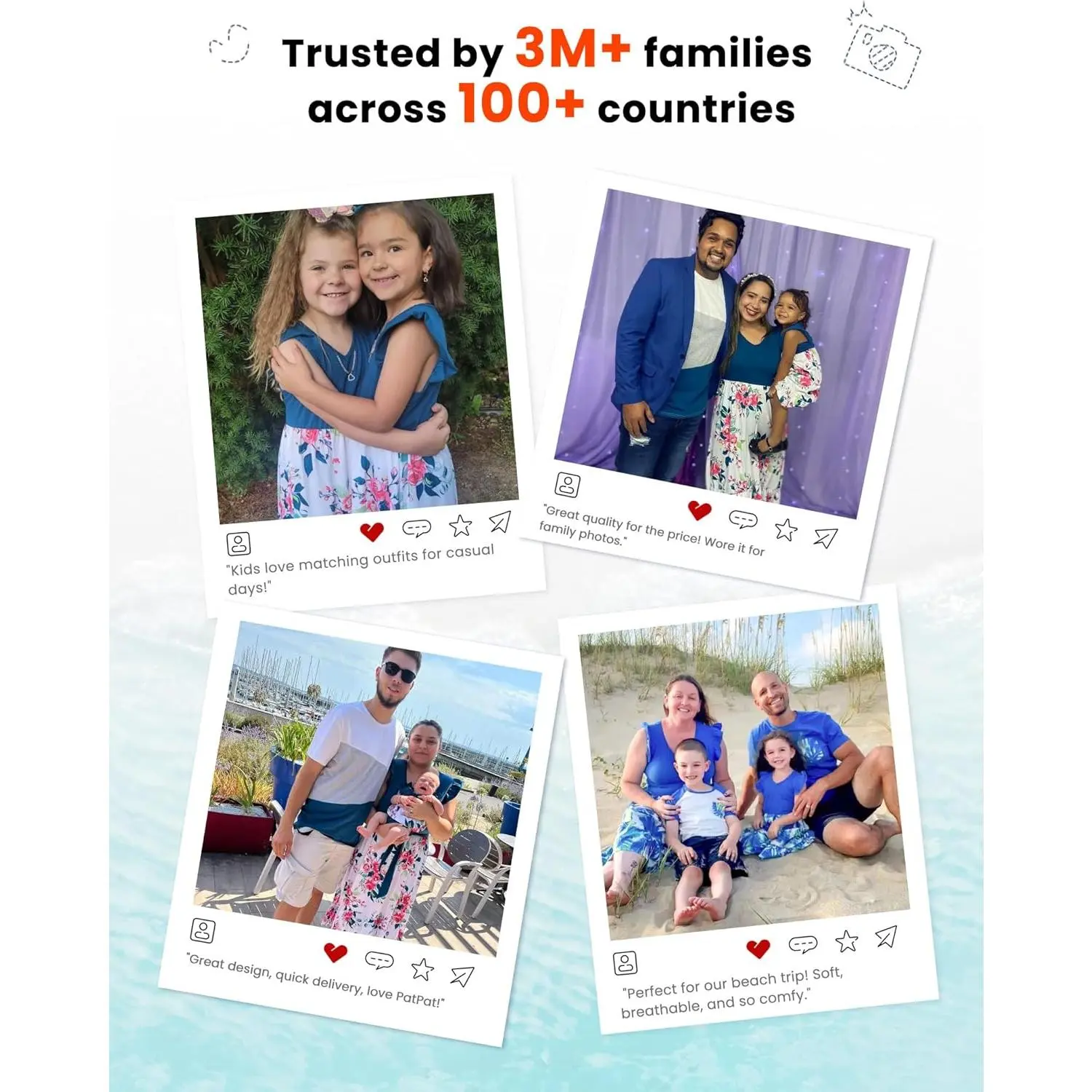 Family Matching Outfits Summer Flutter Sleeve Mommy and Me Dresses and T-Shirts Sets - Casual Holiday Vacation Coordinated Mother Daughter Outfits Comfortable Breathable Cotton Perfect for Beach Party Photo Shoot Daily Wear Fashion Style