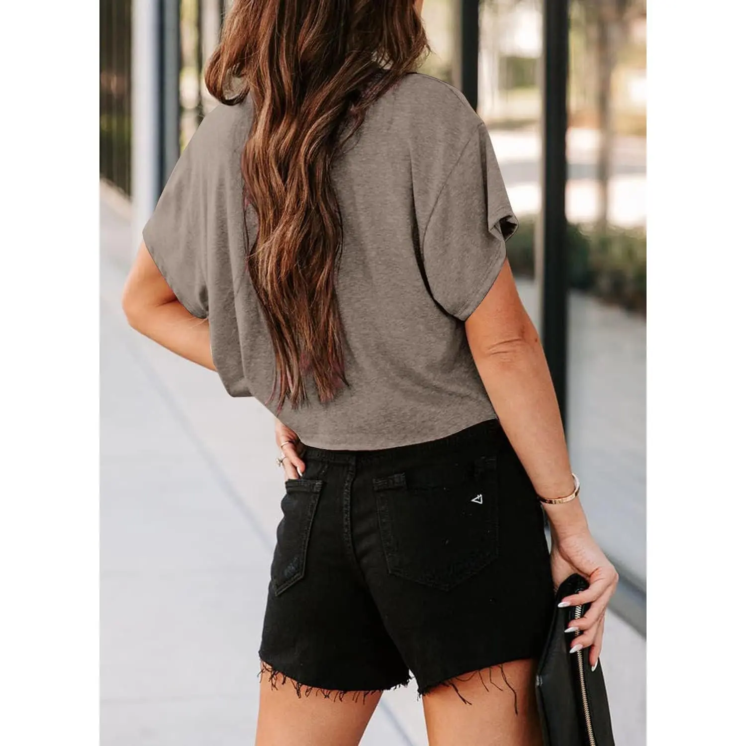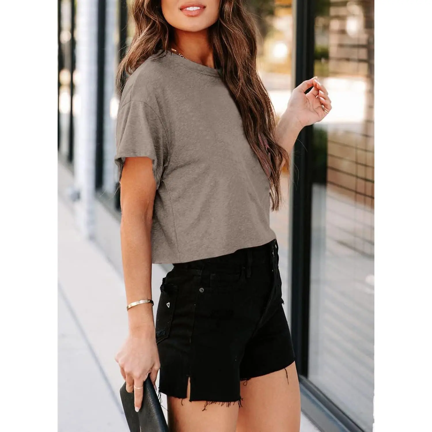 Women's Trendy Cropped T-Shirt - Short Sleeve Crew Neck Solid Basic Tee Casual Summer Top Perfect for Daily Wear Fashion Style Lightweight Comfortable Fit Essential Clothing