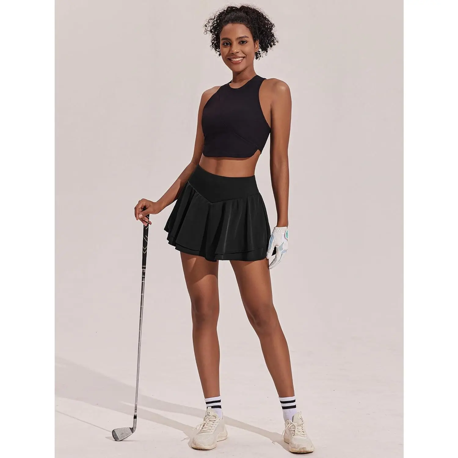 Women's Pleated Tennis Skirt with Double Ruffle and Tummy Control - Athletic Golf Skort with 3 Pockets Perfect for Workout Pickleball Running Yoga Comfortable Breathable Stretchy Fabric Activewear