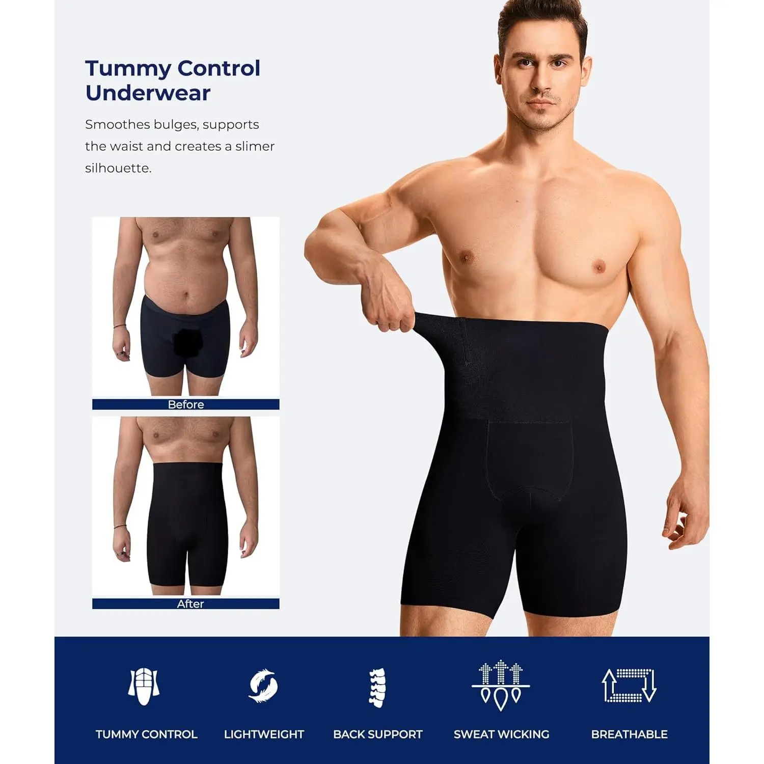 Men's Tummy Control Compression Shorts - Slimming Body Shaper Shapewear Underwear for Men, Breathable Leg Boxer Briefs with Waist Trimmer, Perfect for Workout, Gym, and Everyday Wear, Comfortable Slim Fit Design