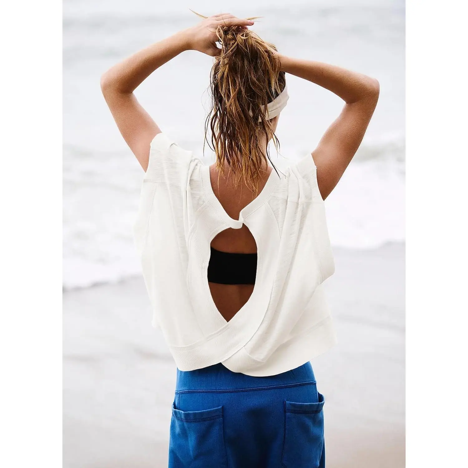 Women's Short Sleeve Open Back Crop Top - Casual Y2K Athletic Gym Workout Running Tee Slouchy Fit Breathable Fabric for Yoga Fitness Training Comfortable Stylish Activewear