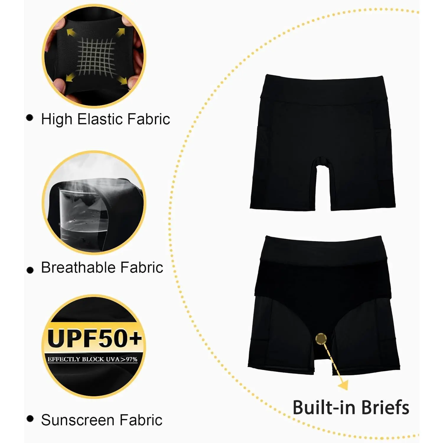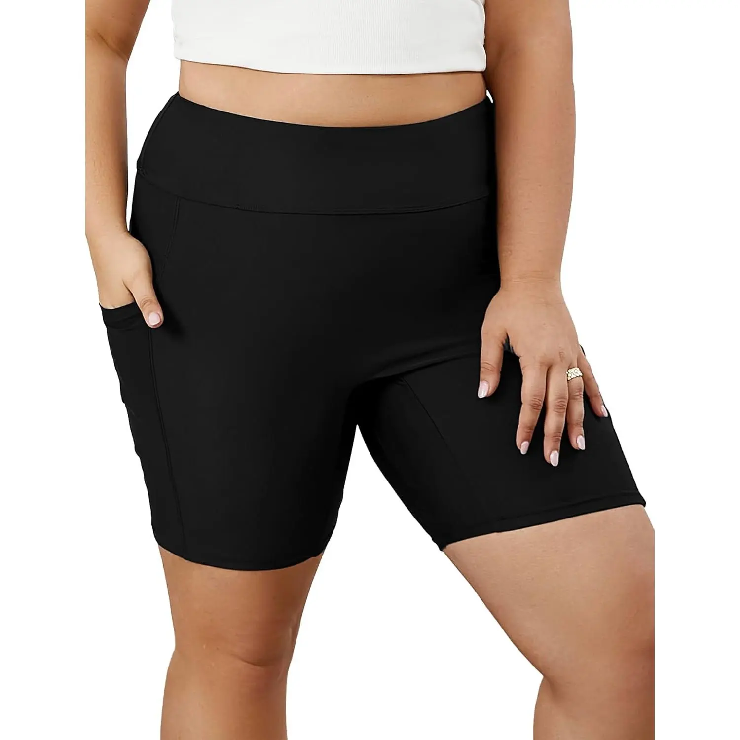 Women's Plus Size High Waisted Swim Shorts - Bathing Suit Bottoms with Pockets, Tankini Board Shorts Bikini for Beach Pool Vacation, Comfortable Stretchy Quick-Dry Fabric, Flattering Coverage Swimwear