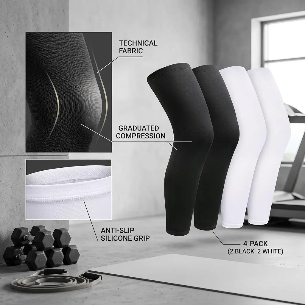 2 Pairs Full Leg Compression Sleeves for Men and Women - Long Knee Sleeves with Anti-Slip Silicone Strips, Supportive Athletic Gear for Running, Sports, Workout, Recovery, and Fitness Activities, Breathable and Comfortable Design
