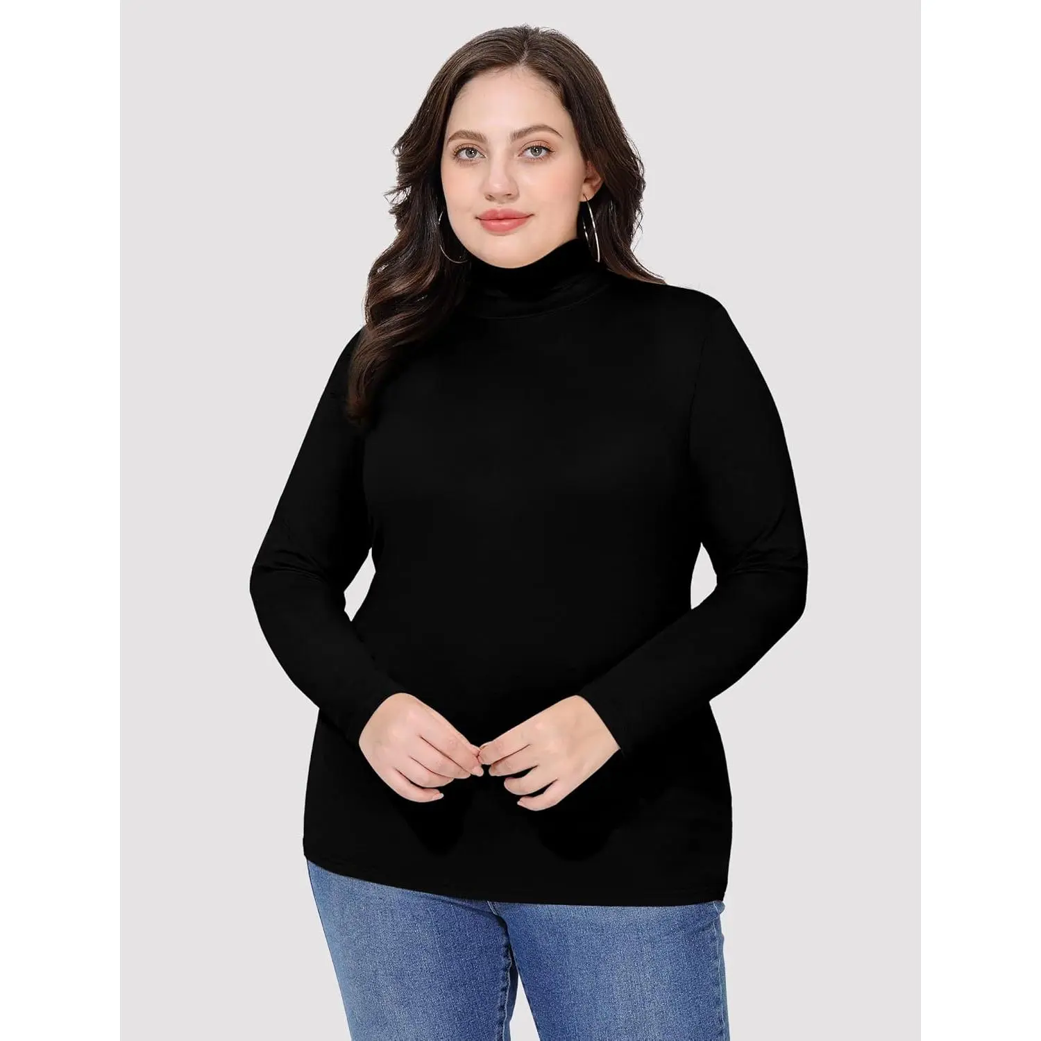 Women's Plus Size Turtleneck Mock Neck Long Sleeve Top - Lightweight Slim Fitted Base Layer Shirt Comfortable Breathable Stretchy Casual Wear Perfect for Layering Daily Outfits Essential Clothing