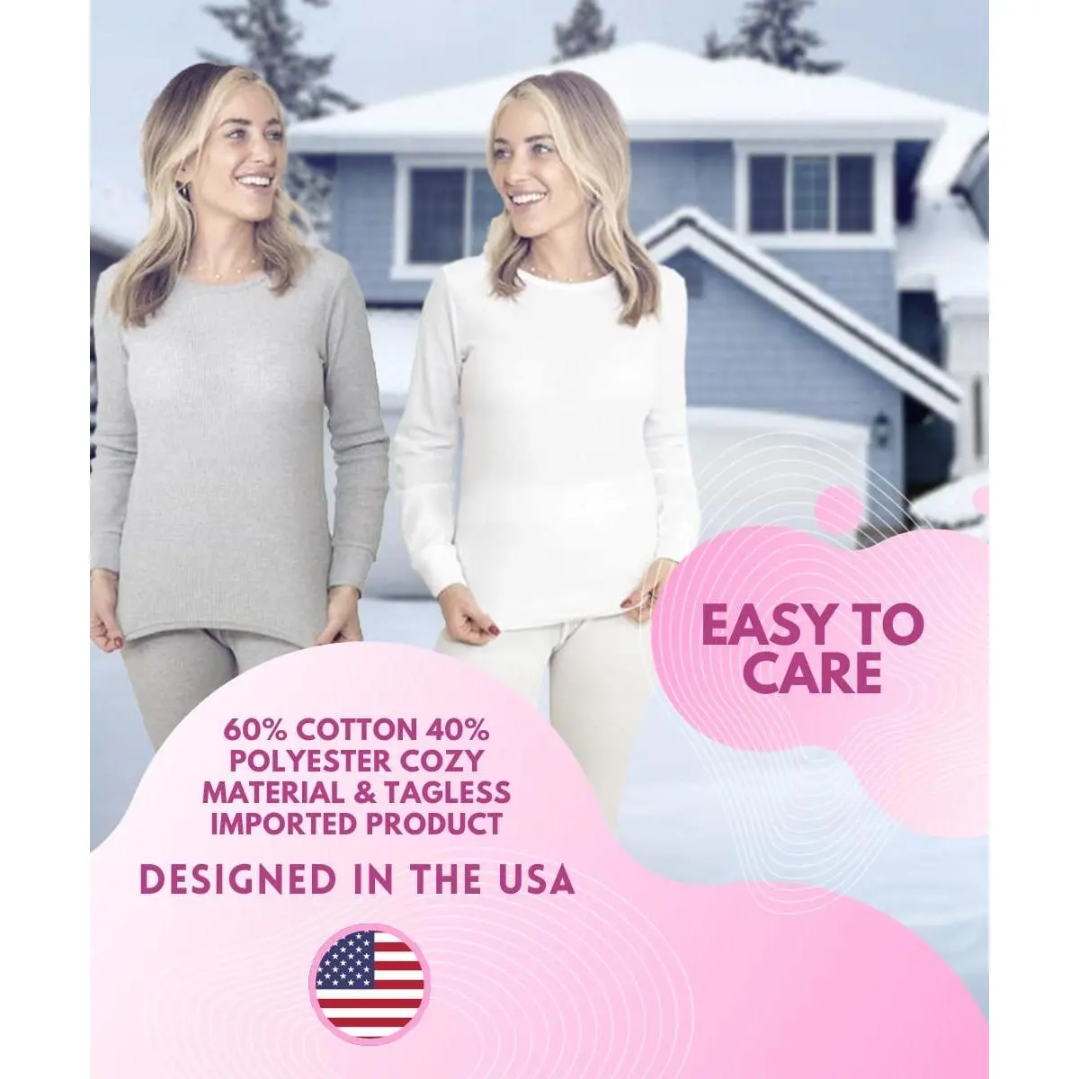 Women's 2-Piece Waffle Thermal Set - Long Sleeve Shirt and Pants Base Layer for Cold Weather | Warm Comfortable Fleece-Lined Thermal Underwear Perfect for Winter Outdoor Activities Skiing Hiking Camping Layering Under Clothes