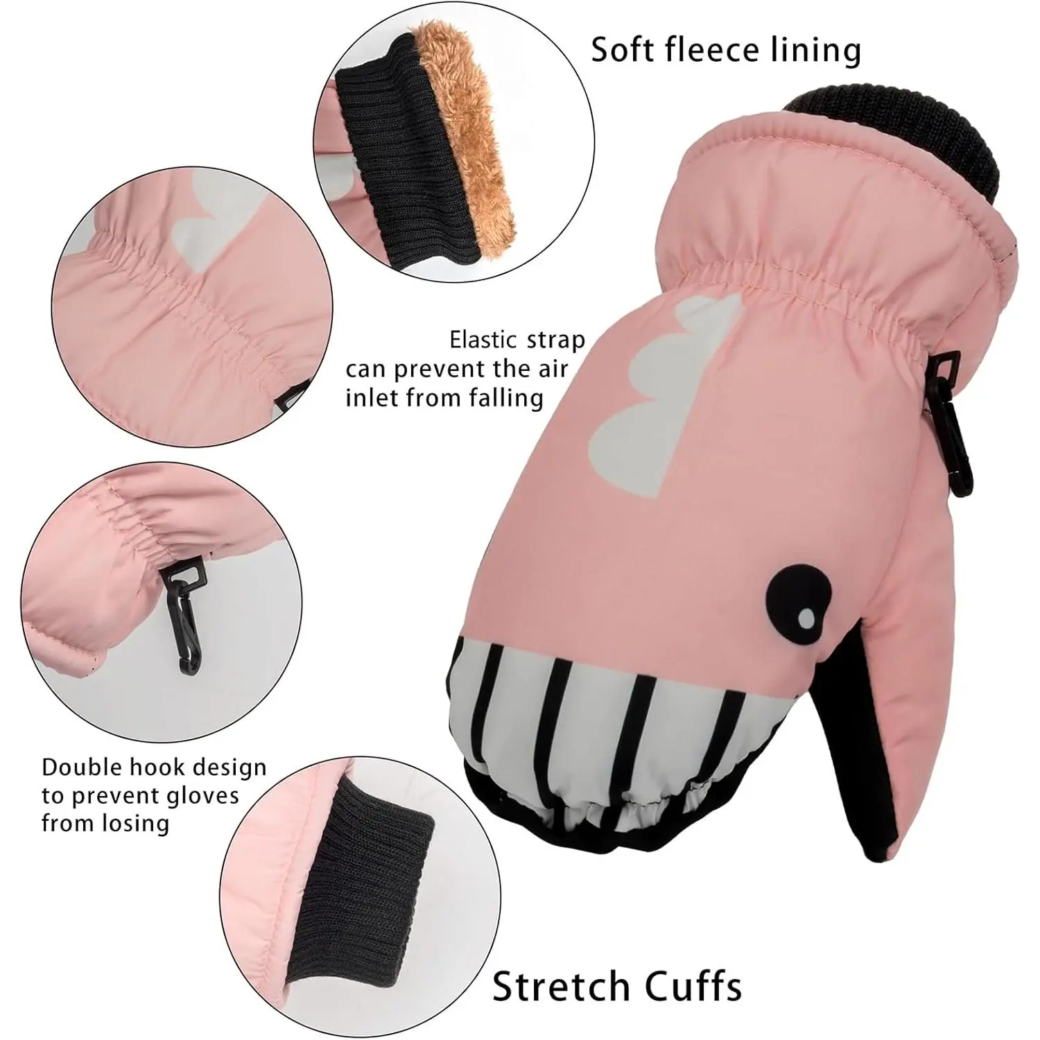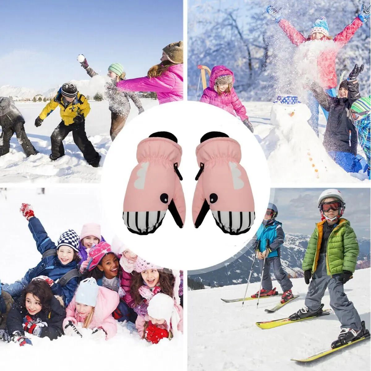 Kids Winter Ski Snow Mittens - Waterproof Snow Gloves Cute Warm Fleece Lined Gloves for Boys Girls Age 4-8 Years Cold Weather Outdoor Activities Snowboarding Sledding Playtime Comfortable Durable Design