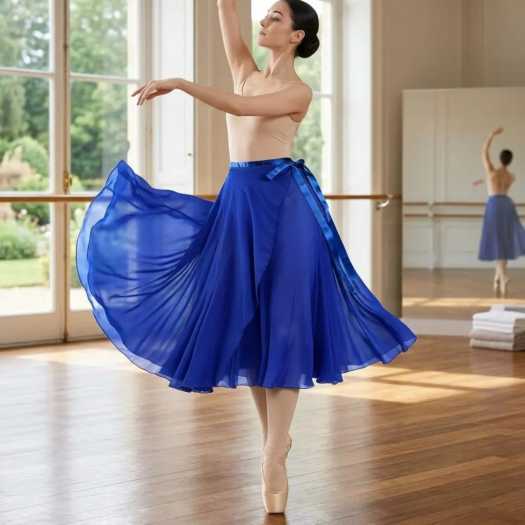 Women's Elegant Long Chiffon Ballet Dance Wrap Skirt with Tie - Flowy Lightweight Practice Performance Skirt Perfect for Ballet Modern Dance Yoga Rehearsal Stage Show Comfortable Breathable Fabric Ladies Dancewear