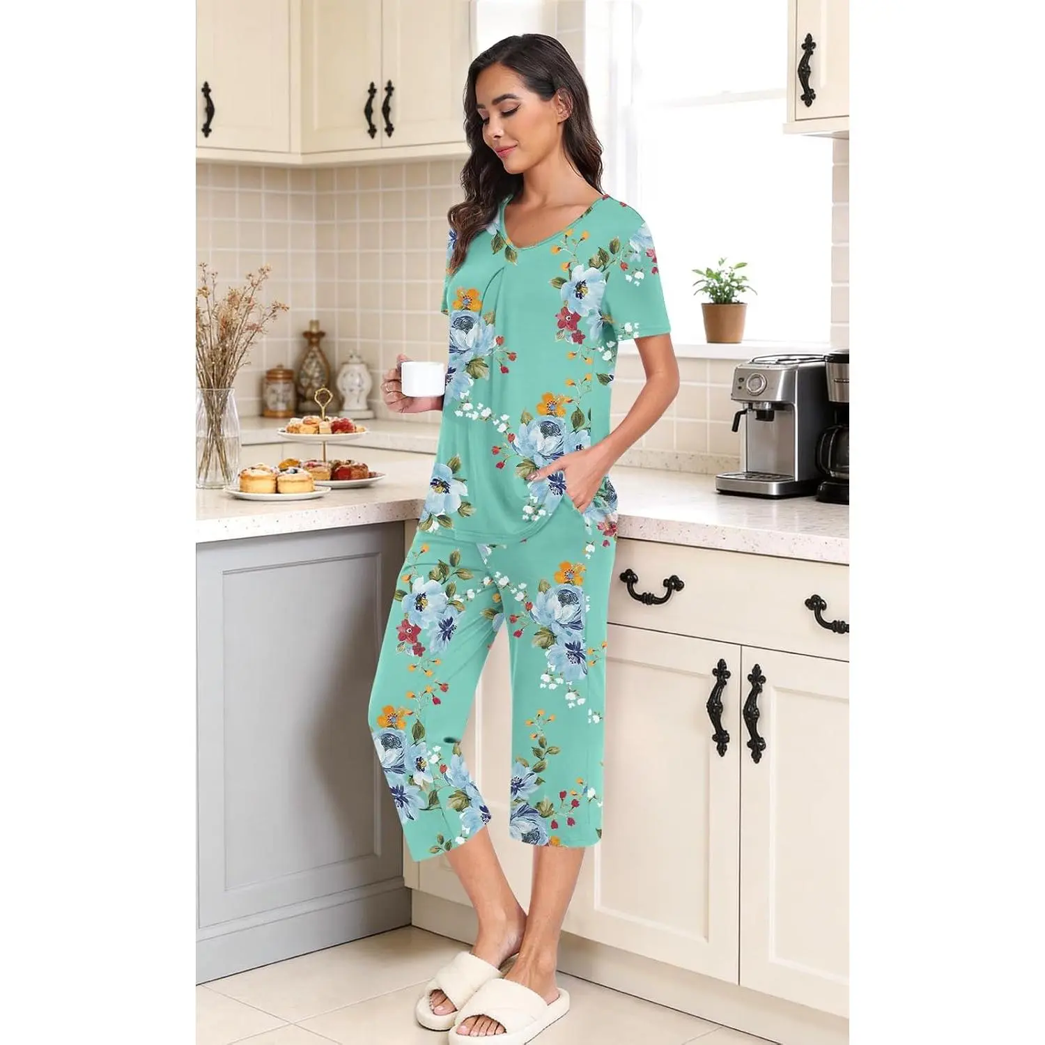 08 pleated Beige Black Flower