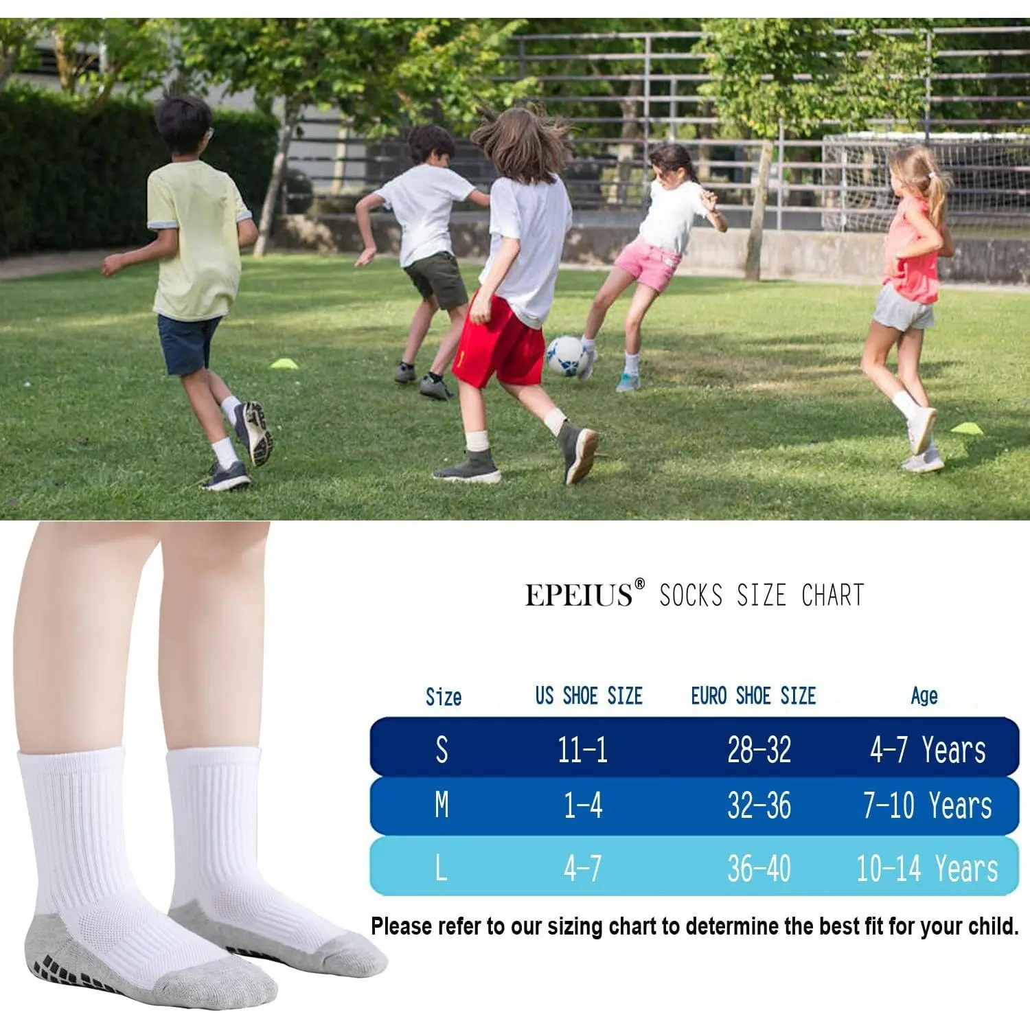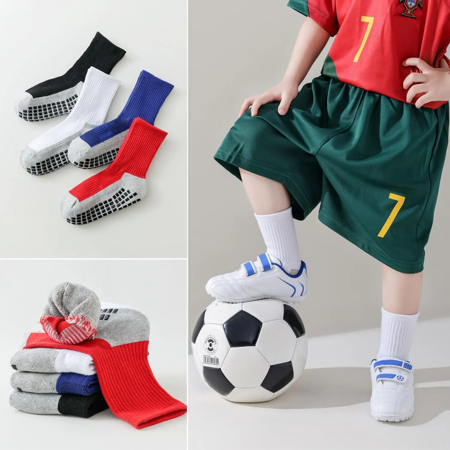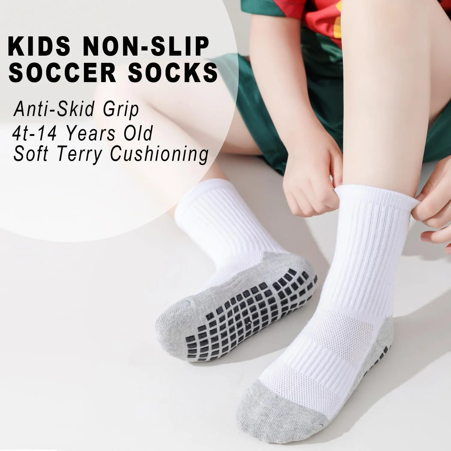 Kids Non-Slip Grip Soccer Socks - Cushioned Athletic Socks for Toddler Boys Girls Youth Football Players 4T-14 Years, Breathable Comfortable Sports Socks Perfect for Training Games Outdoor Activities