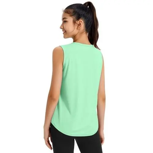 Girls Quick Dry Athletic Tank Tops - UPF50+ Workout Shirts for Dance Running Gymnastics, Breathable Comfortable Kids Sportswear Perfect for Training Exercise Outdoor Activities Lightweight Performance Fabric