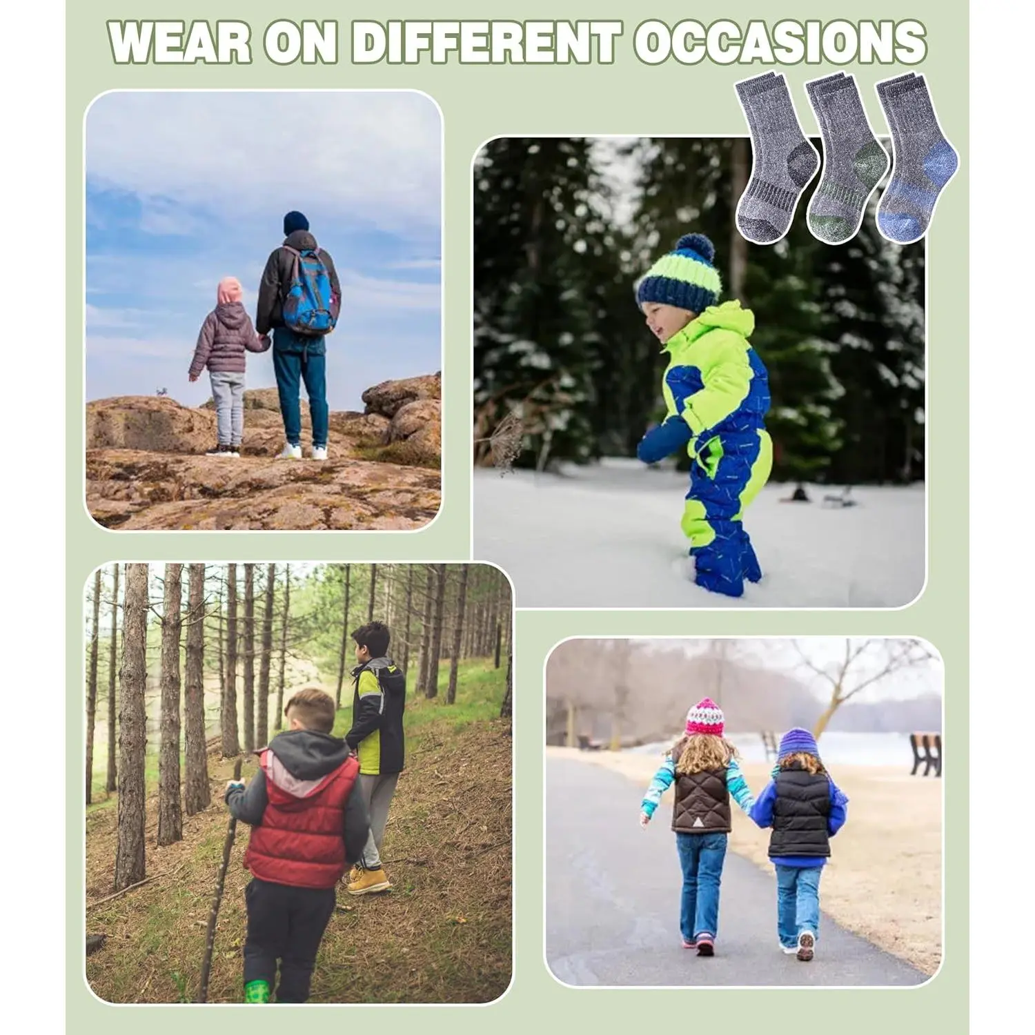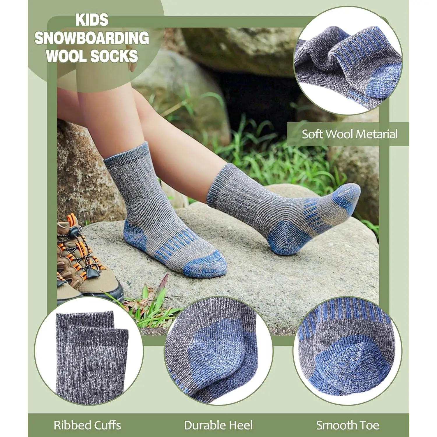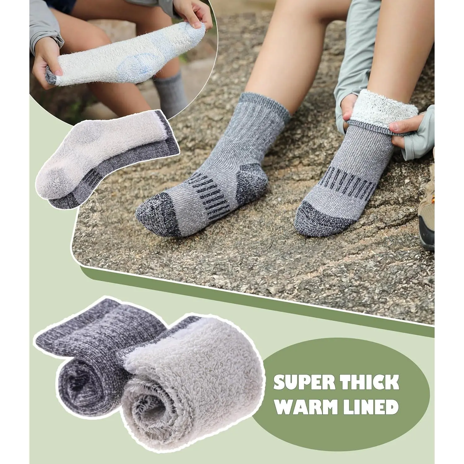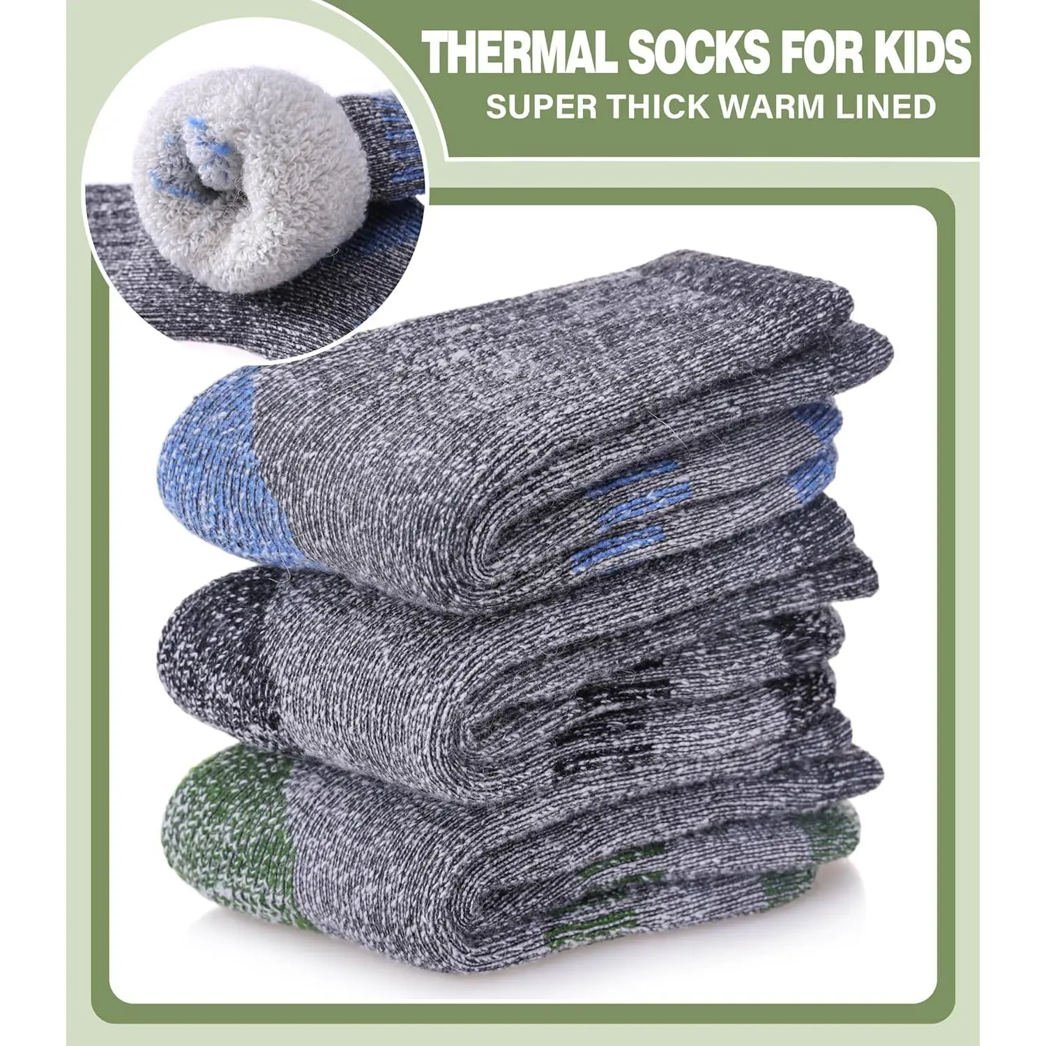 Kids Merino Wool Hiking Socks - Winter Thermal Warm Thick Cozy Cushion Boot Crew Socks for Boys Girls, Perfect for Outdoor Activities, Breathable Comfortable Durable Everyday Wear