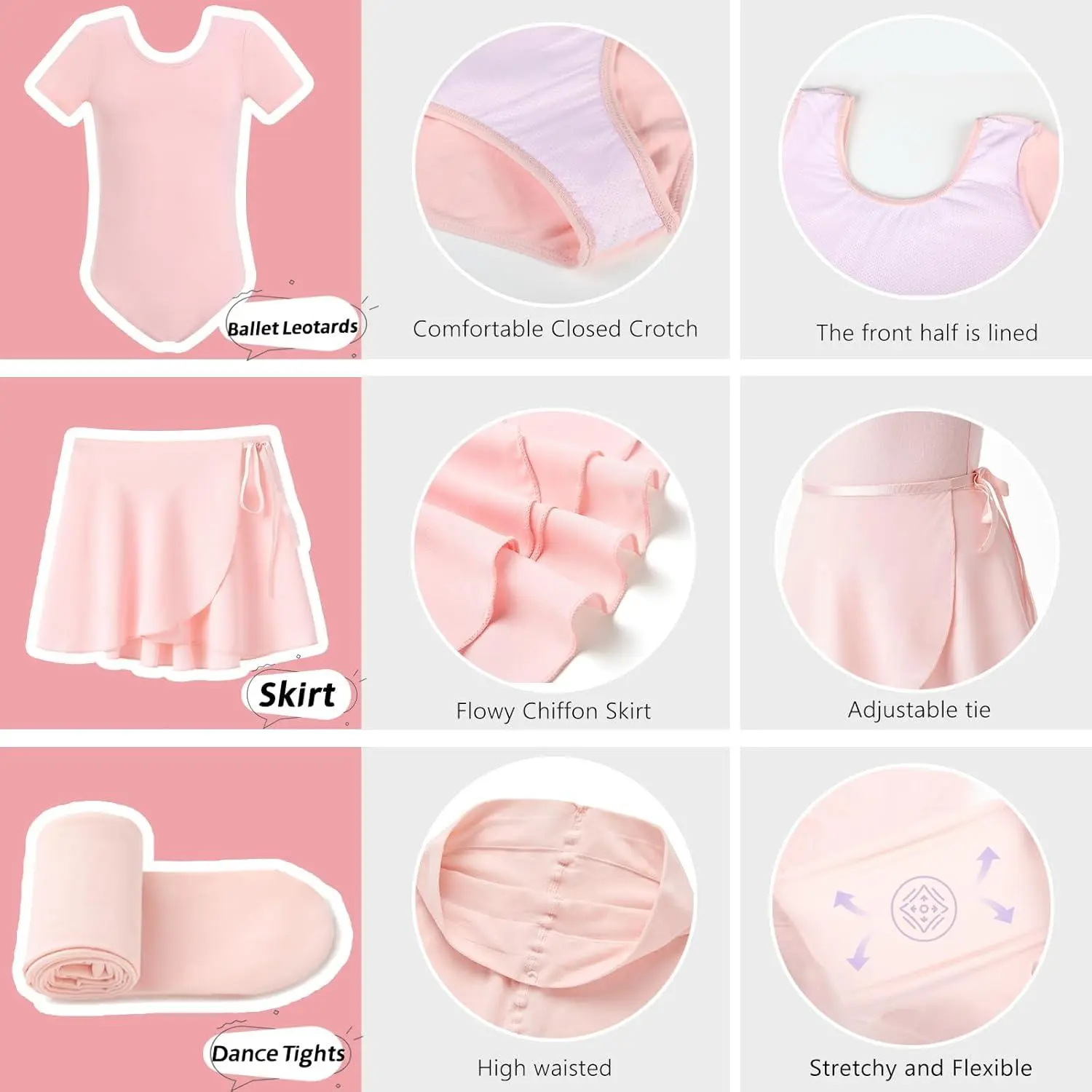 Girl's Ballet Leotard Dress Outfit with Skirt and Tights - Complete Toddler Dance Costume for Ballet Class Performance Recital Comfortable Stretchy Fabric Perfect for Young Dancers