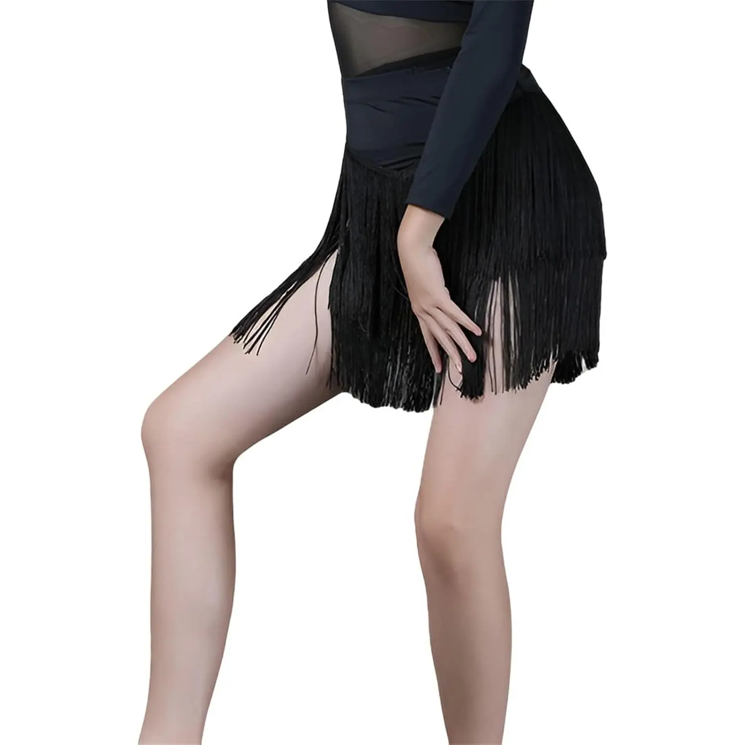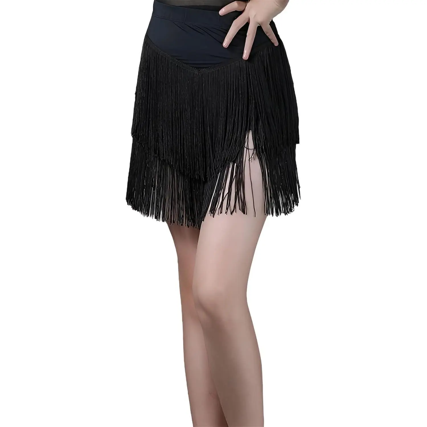 Girls Kids Latin Dance Hip Skirt - Fringe Mini Layered Tassel Swing Skirt for Ballroom Tango Performance, Perfect for Dance Practice, Stage Shows, and Performance Costumes, Lightweight and Flowy Design