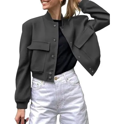Women's Casual Bomber Jacket - Button Down Varsity Style Shackets with Pockets Lightweight Comfortable Outerwear Perfect for Daily Wear Shopping Leisure Fashion Trendy Streetwear Style