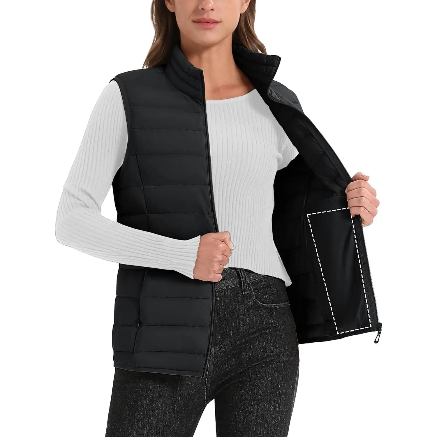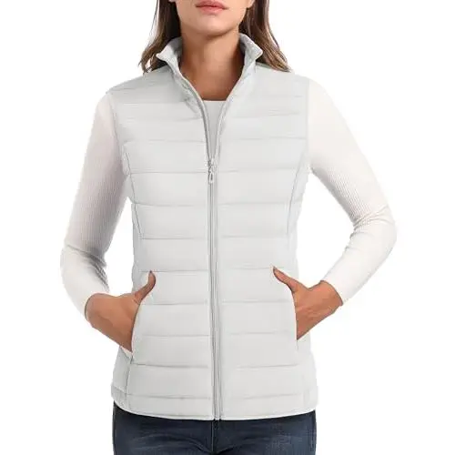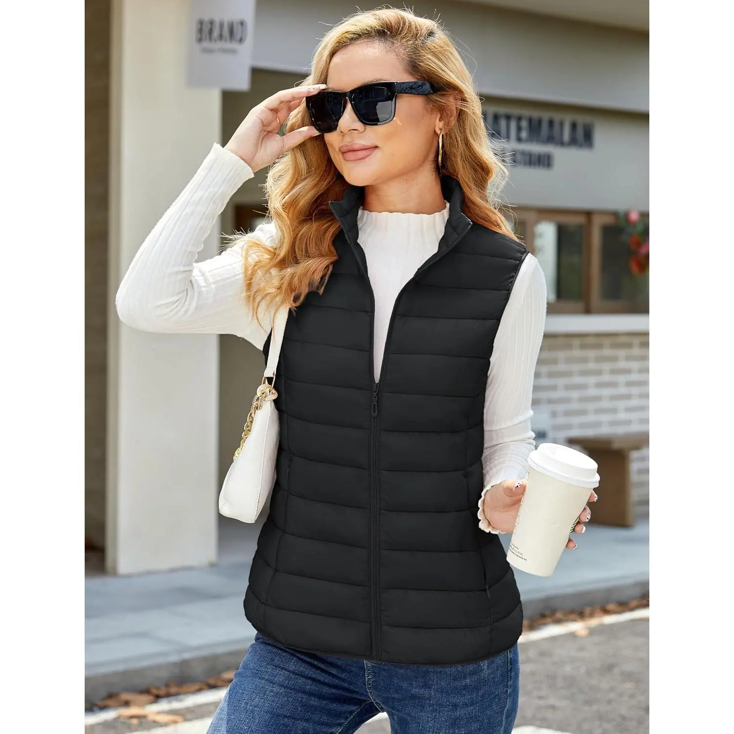 Women's Lightweight Puffer Vest with Stand Collar and Zip Closure - 4 Pockets Sleeveless Quilted Padded Outerwear for Winter Fall Casual Warm Fashion Jacket Style