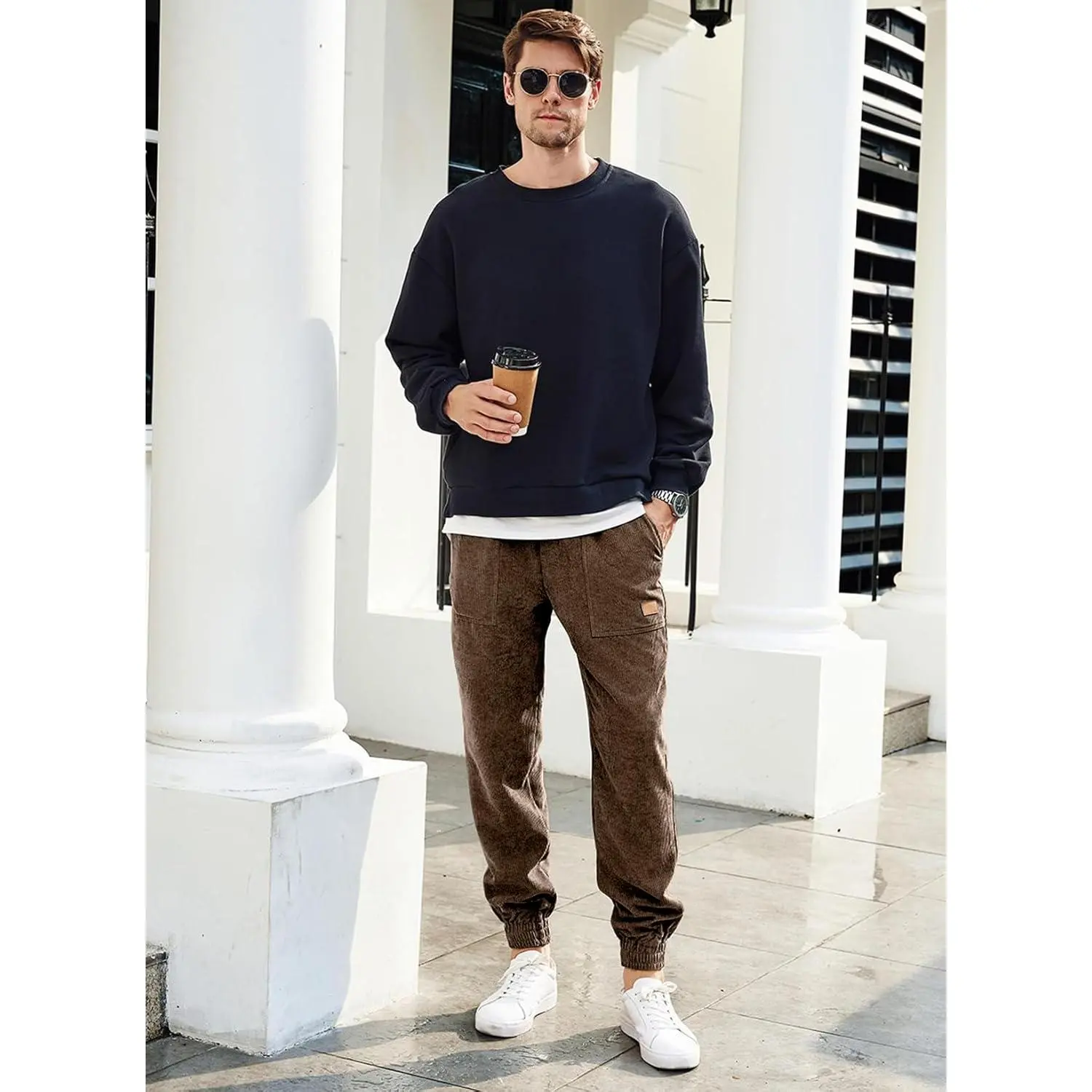 Men's Casual Corduroy Joggers Pants with Drawstring Elastic Waist and Pockets - Baggy Tapered Cargo Sweatpants Comfortable for Daily Wear, Lounge, Streetwear, and Outdoor Activities, Lightweight and Breathable Fabric