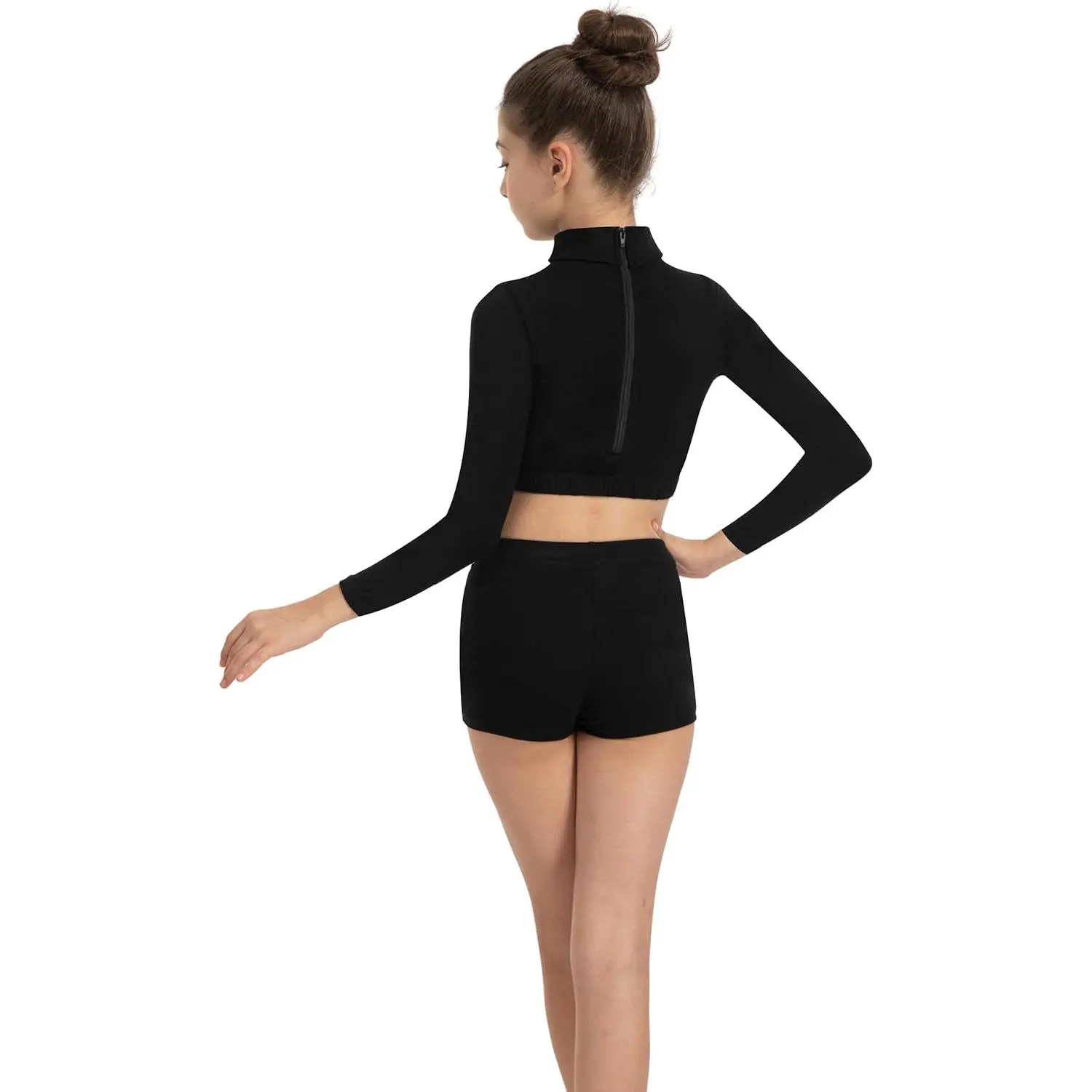 Girls' Team Basic Turtleneck Long Sleeve Leotard with Durable Snaps, Front Lining, Zipper Back - Comfortable Stretchy Dance Gymnastics Practice Wear Perfect for Ballet Cheerleading Performance Training Activewear