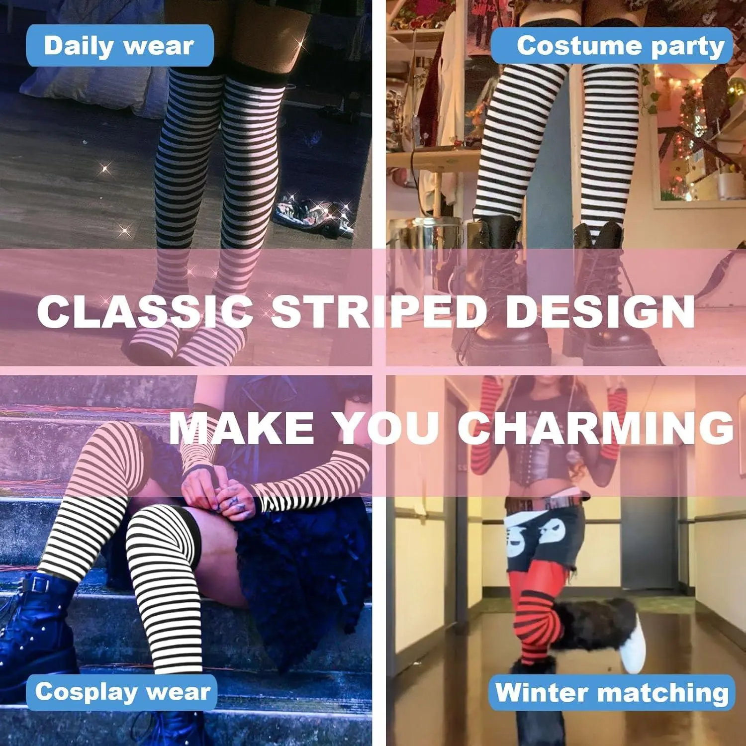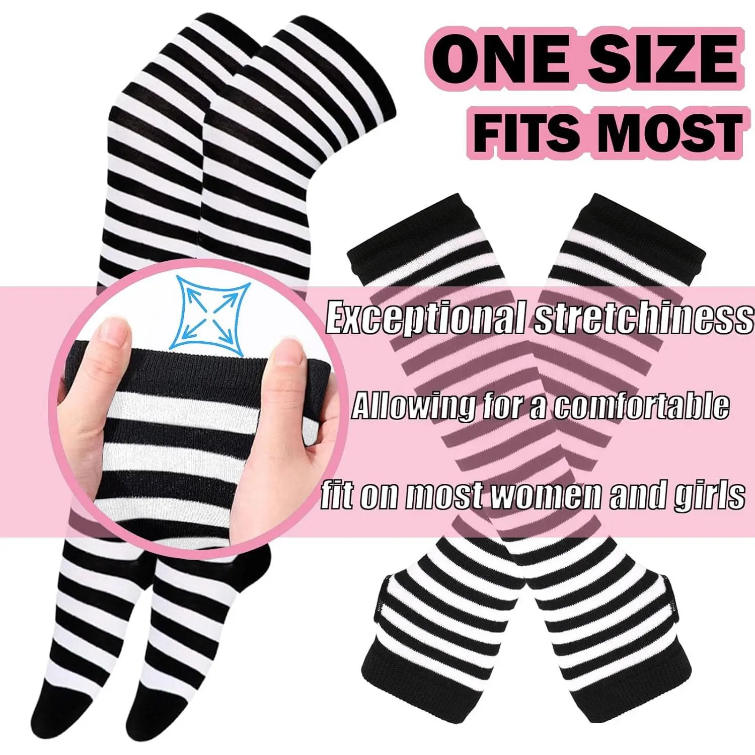Women's Black and White Striped Arm Leg Warmers Sleeves Set with Rainbow Knee High Socks and Fingerless Gloves - Hand Thigh Warmers for Dance Yoga Fitness Workout Performance Costume Accessories