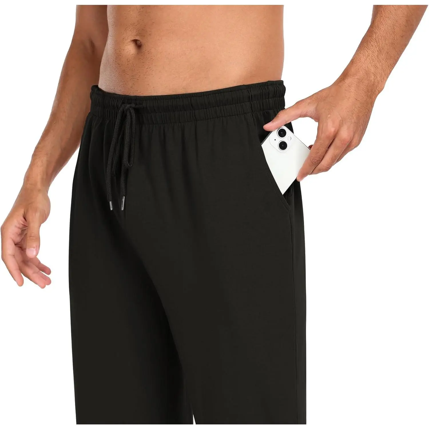 Men's Casual Cotton Yoga Pants with Pockets - Comfortable Sweatpants Jogger Open Bottom Lounge Pants for Relaxation Home Wear Gym Workout Lightweight Breathable Stretchy Fabric