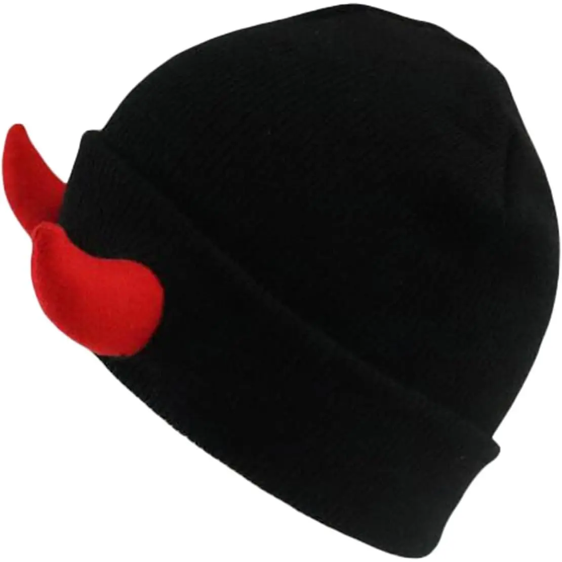 Devil Horn Knitted Beanie Hat for Adults - Novelty Demon Horns Cap Winter Warm Hip Hop Hat for Women and Men, Soft Stretchy Skull Cap with Unique Design for Cold Weather Outdoor Activities Fashion Accessory