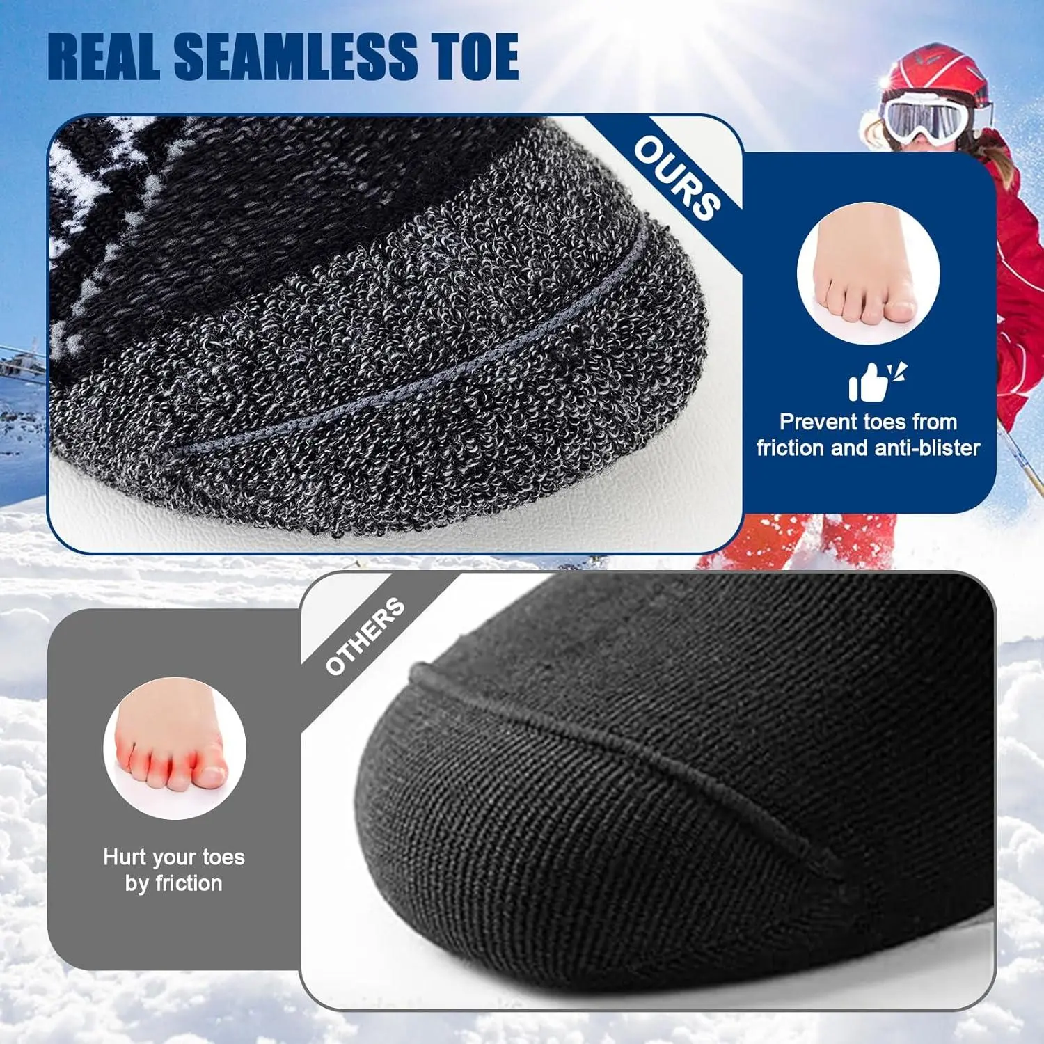 Merino Wool Ski Socks for Women and Men - 2 Pairs Knee High Winter Warm Thermal Performance Socks for Skiing Snowboarding Outdoor Sports, Breathable Comfortable Moisture-Wicking Cold Weather Socks