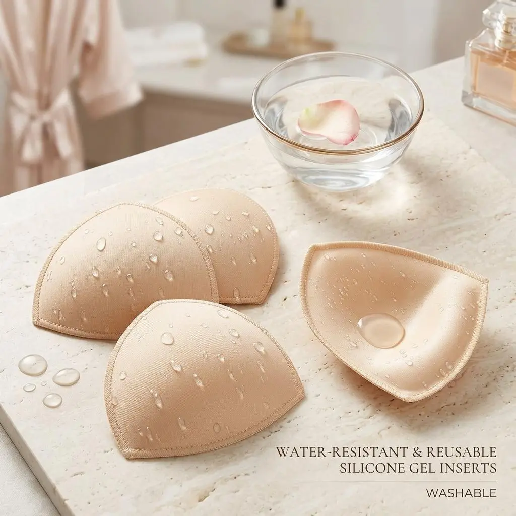 Waterproof Swimsuit Bra Pad Inserts 4 Pairs - Push Up Padded Inserts for Bikini Sports Bra A/B C/D D/E Cup, Sewn Pads for Enhanced Support and Comfort in Swimwear and Activewear