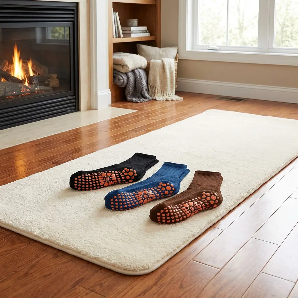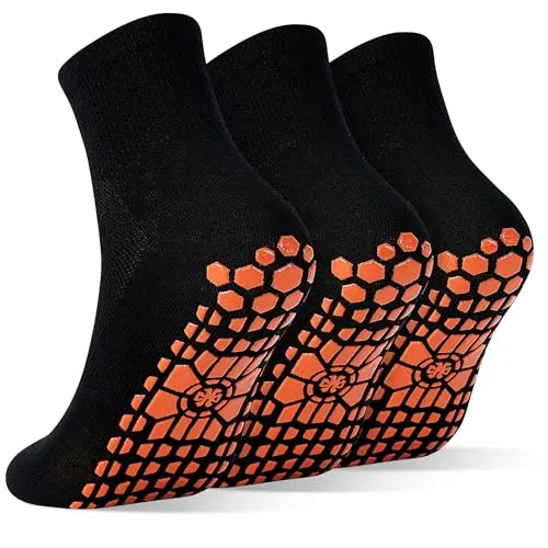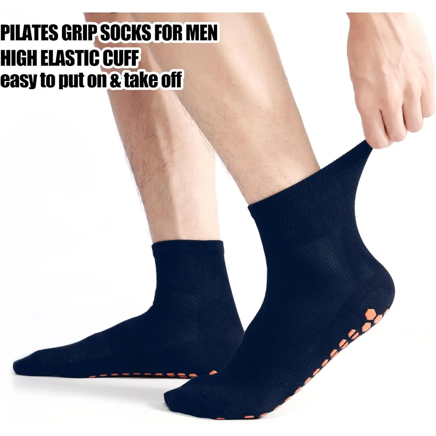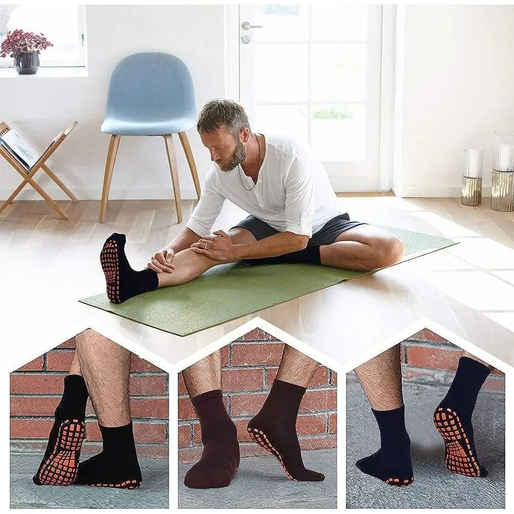 Men's Non-Slip Grip Socks - 3 Pairs Anti-Skid Sticky Socks for Tile Wood Floors, Pilates, Yoga, Barre, Hospital, Perfect as Slipper Socks, Breathable Comfortable for Indoor Activities and Sports