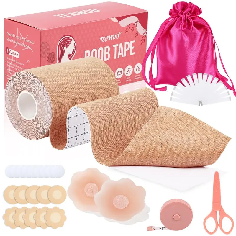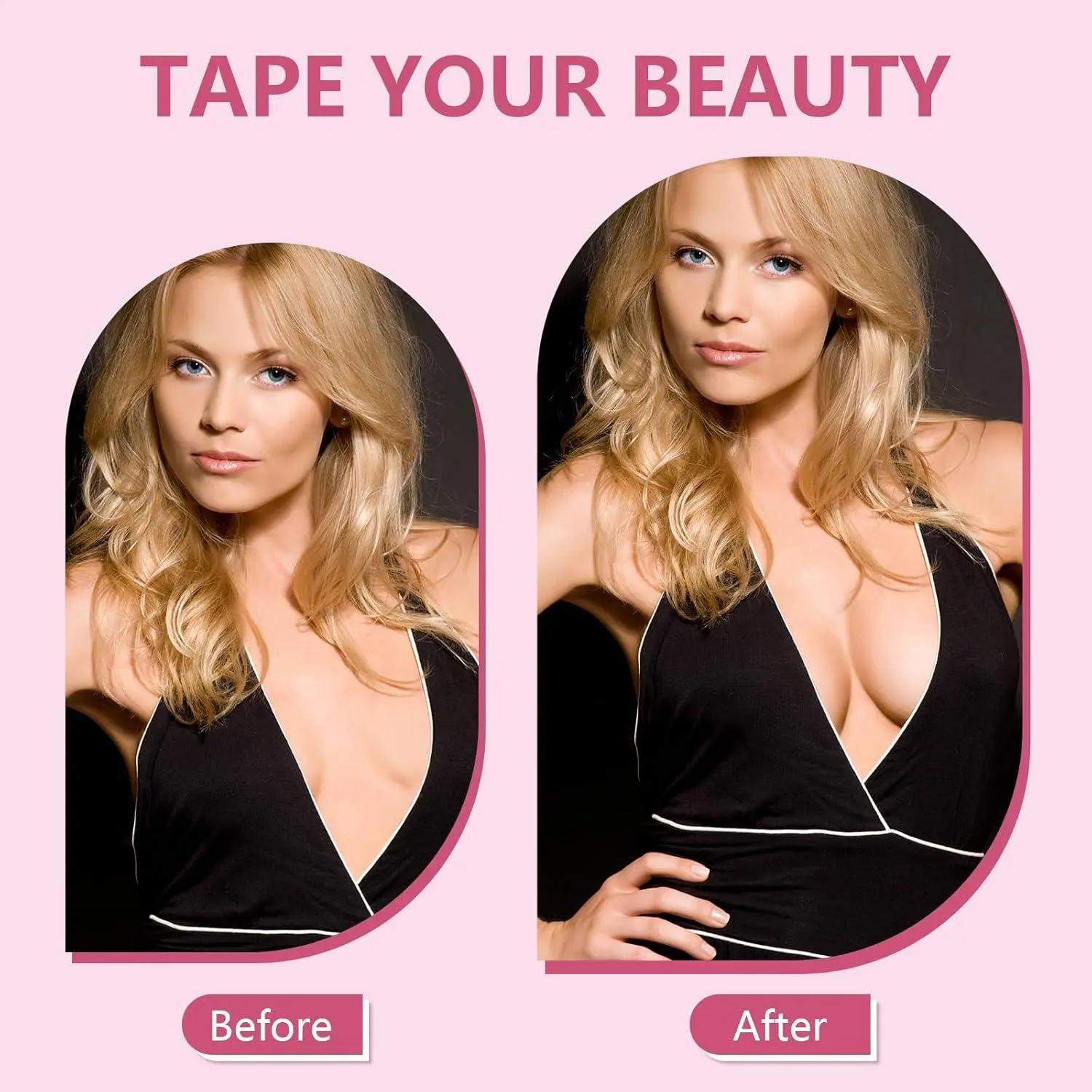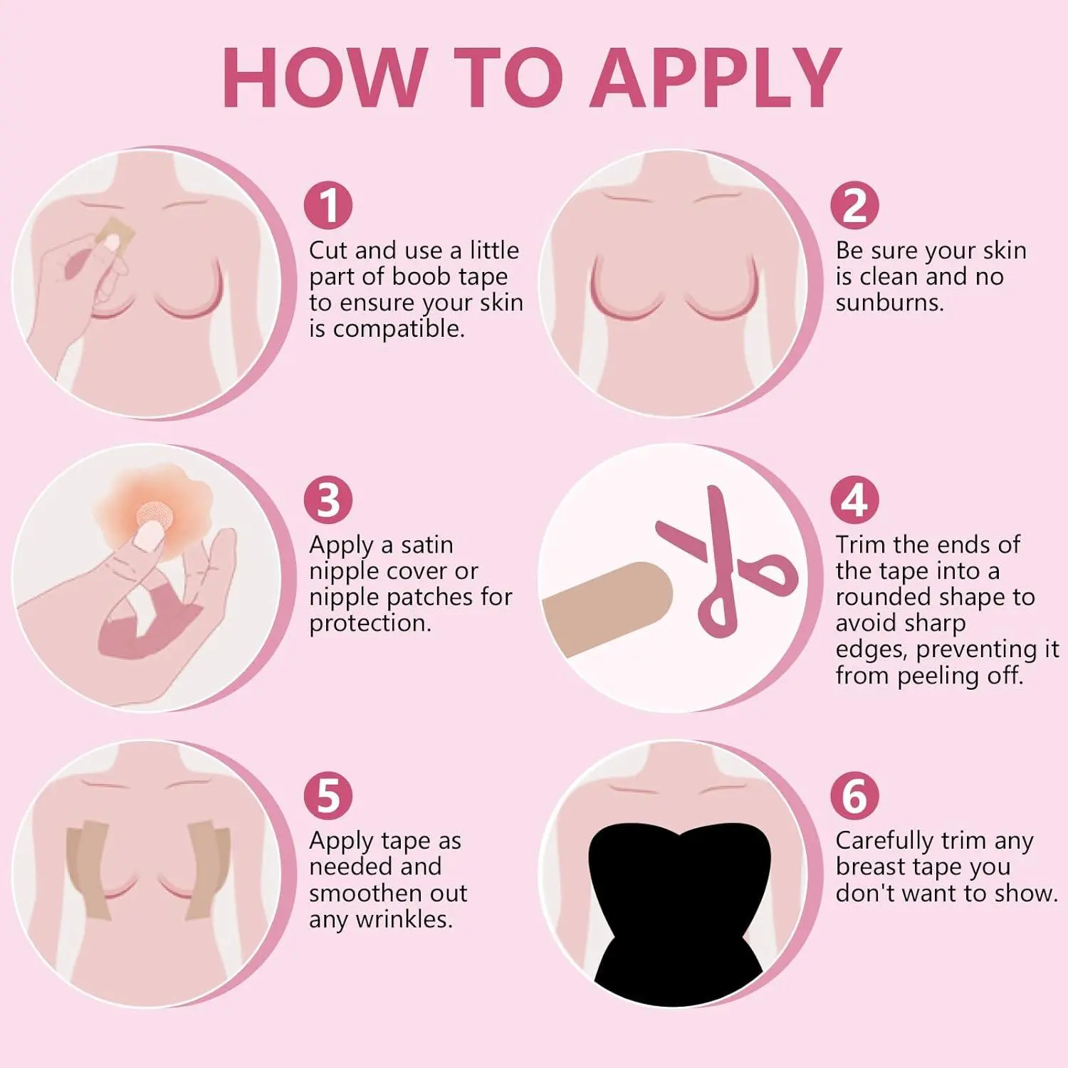 Boob Tape Kit for Breast Lift - Body Tape, Silicone Breast Petals, Satin Nipple Stickers, Invisible Adhesive Support for Backless Dresses, Strapless Tops, Wedding, Party, Fashion, Comfortable, Reusable, Waterproof