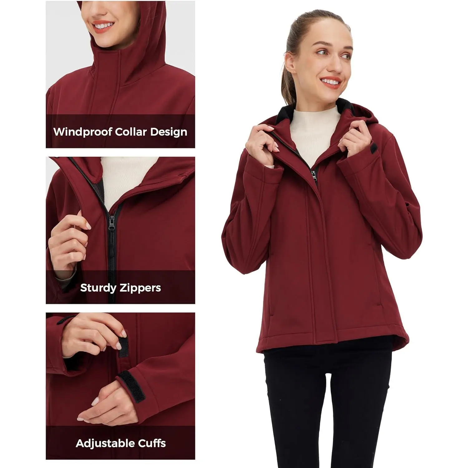 Women's Fleece Lined Softshell Jacket - Lightweight Insulated Waterproof Windproof Winter Coat Perfect for Outdoor Hiking Skiing Camping Travel Daily Wear Comfortable Warm Fashion Style Ladies Outerwear