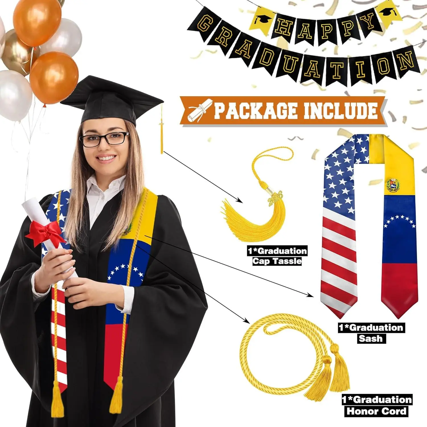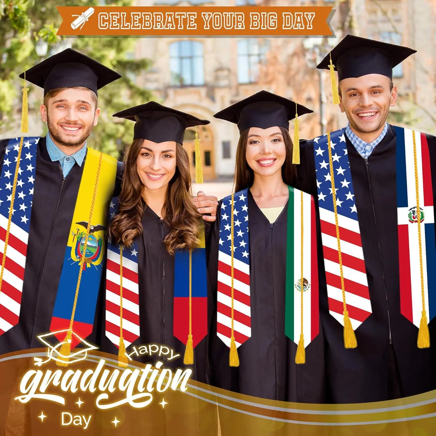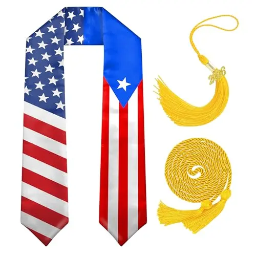 Graduation Stole Class of 2026 with Cap Tassel and Honor Cord - Mixed Flag Graduation Sash for Graduation Day 72 Inch Long Academic Regalia for High School College University Ceremony Commencement Accessories