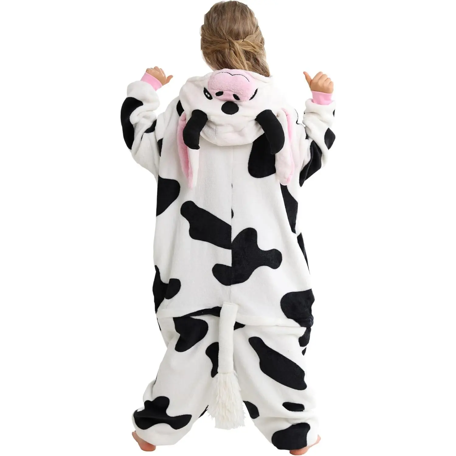 Unisex Children's Animal Cow-Velvet Onesie - Halloween Costume Pajamas Christmas Cosplay Sleepwear for Boys Girls, Soft Warm Fleece Winter Nightwear Perfect for Parties and Home Lounging