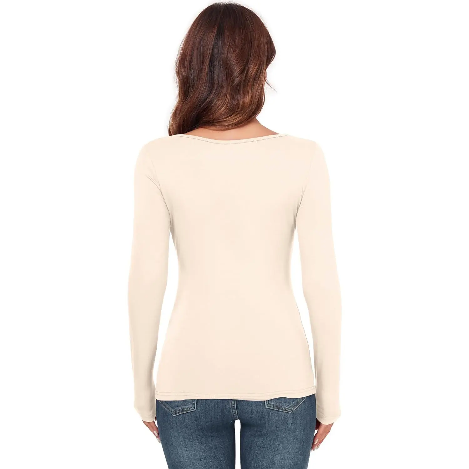 Women's Scoop Neck Long Sleeve Slim Fit T-Shirt Thermal Blouse - Basic Layer Shirt Comfortable Casual Everyday Wear Perfect for Daily Office Shopping Lightweight Soft Fabric Essential Clothing