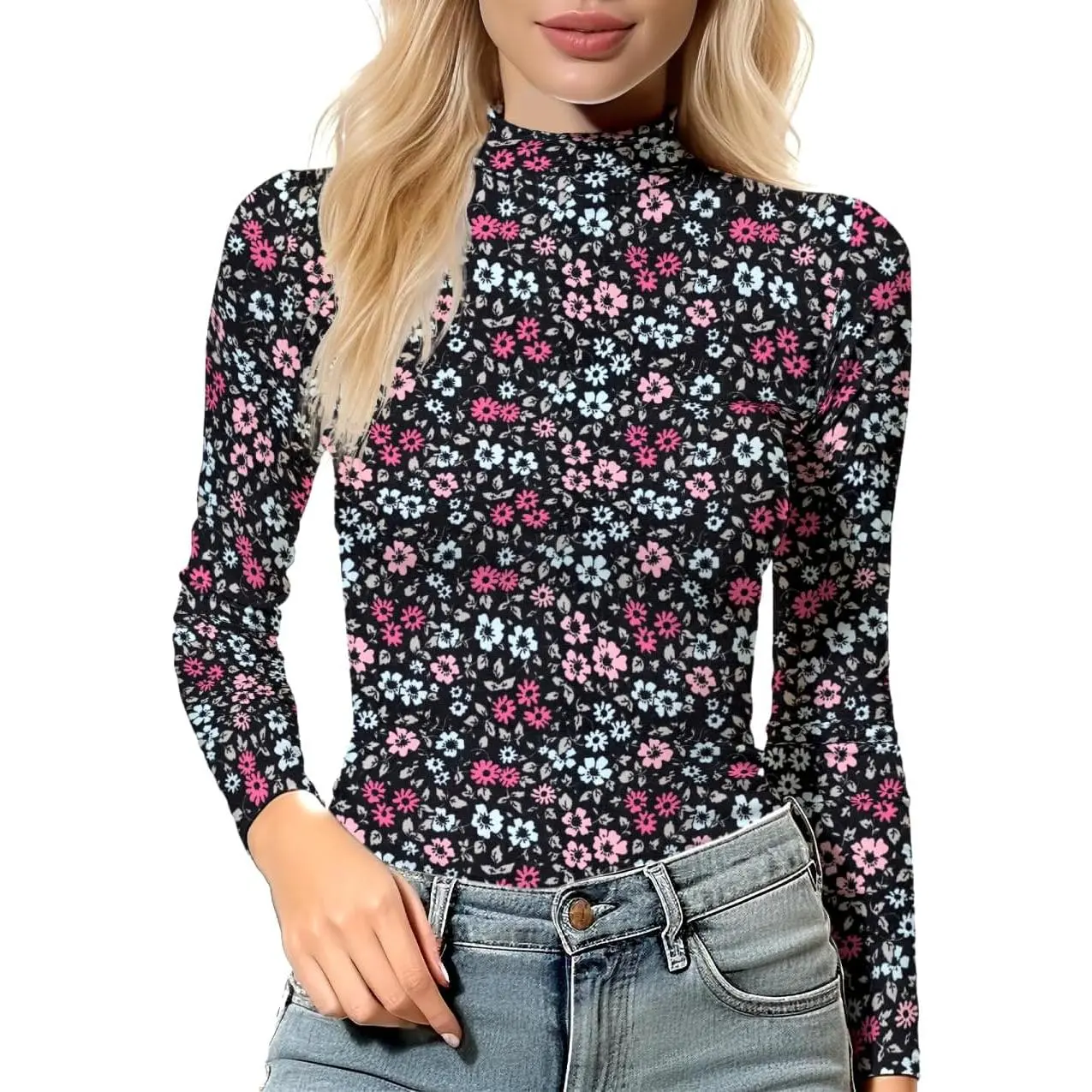 Women's Long Sleeve Mock Turtleneck Tops - Lightweight Baselayer Shirts High Neck Pullover Undershirts Stretchy Comfortable Breathable Thermal Wear Perfect for Layering Daily Casual Fashion Style