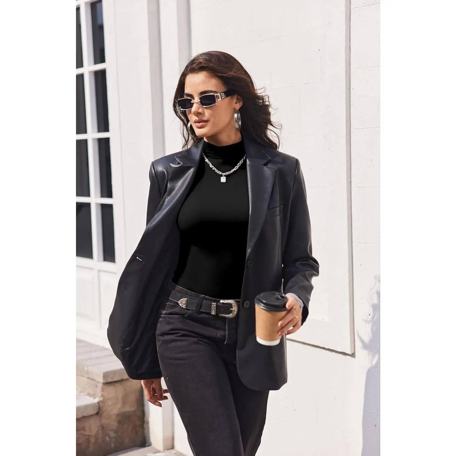 Women's Slim Fit Turtleneck Long Sleeve Shirt - Thermal Base Layer Mock Neck Top Soft Lightweight Stretch Undershirt Perfect for Layering Casual Wear Comfortable Breathable Fabric Essential Clothing