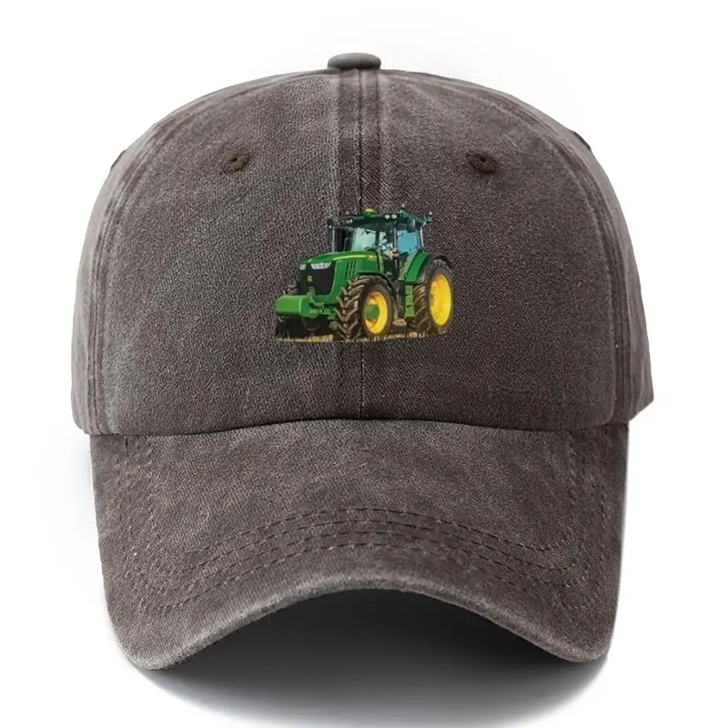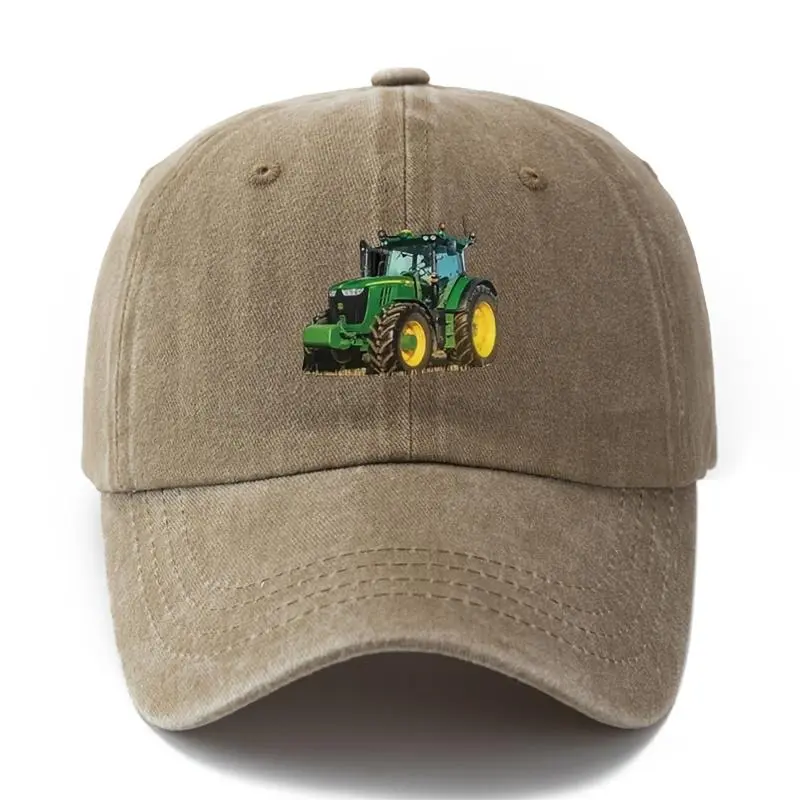 Printed tractor baseball cap men's outdoor camping vacation casual curved brim hat retro duckbill cap dad truck driver hat