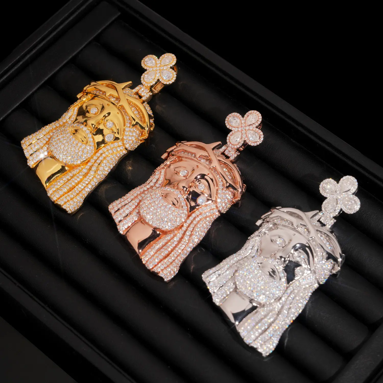[ICE HUE]18K Gold Vacuum Plated S925 Moissanite Four-Leaf Clover Portrait Pendant with Free Copper Necklace Hip Hop Inspired Solid Jewelry Gift