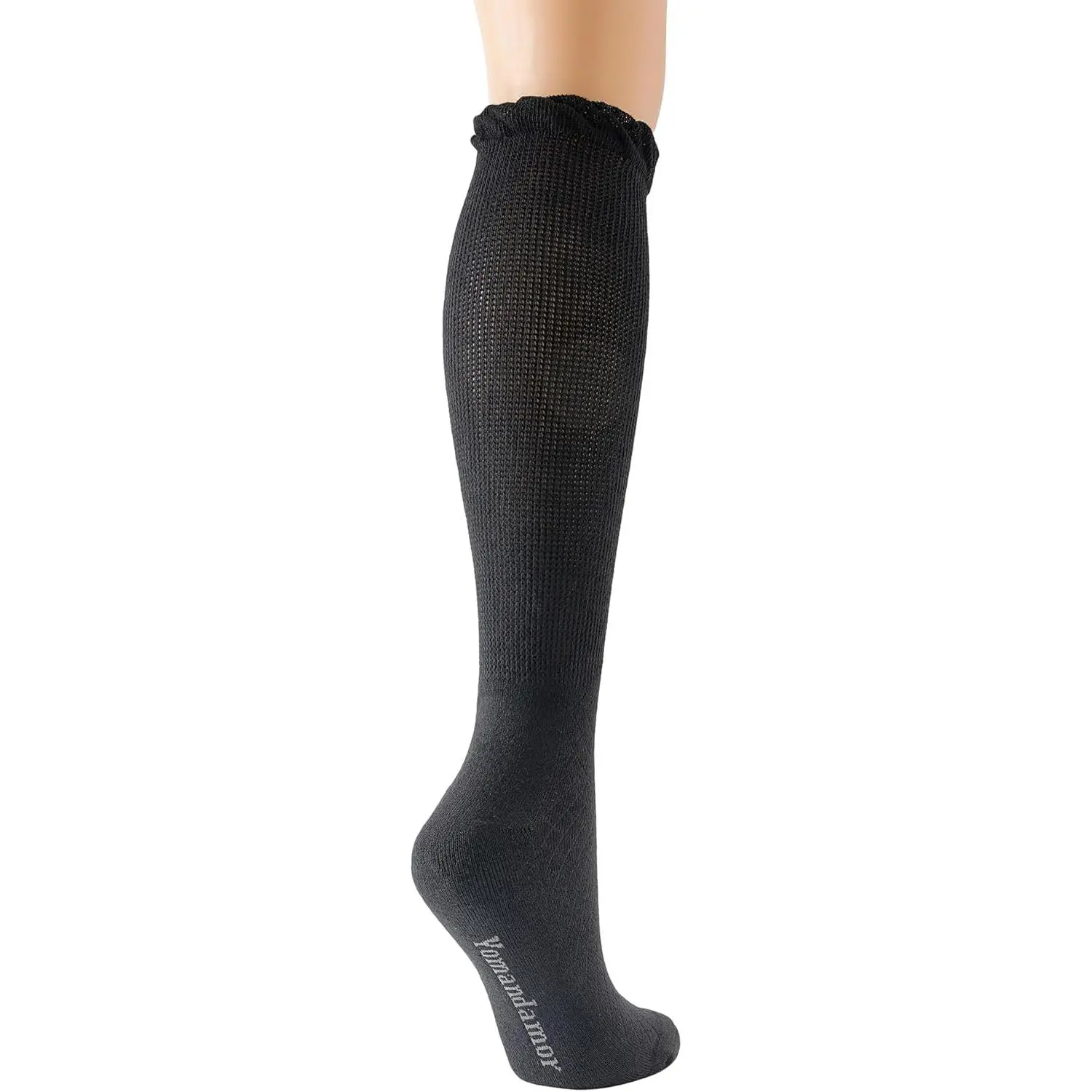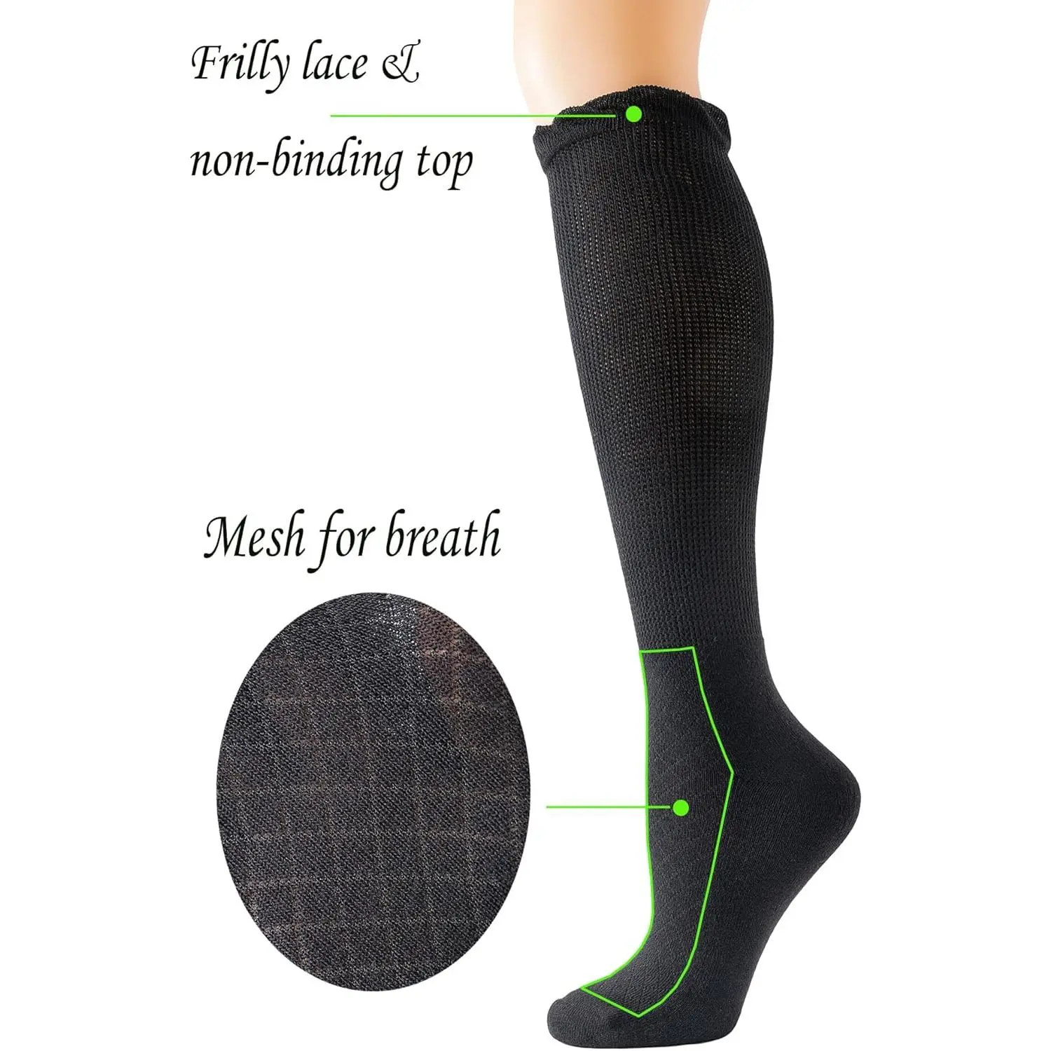 Women's Diabetic Bamboo Rayon Knee-Hi Seamless Socks - 4 Pairs Black Long Lace Non-binding Socks for Comfortable Circulation, Size 9-11, Breathable Soft Stretchy Everyday Wear