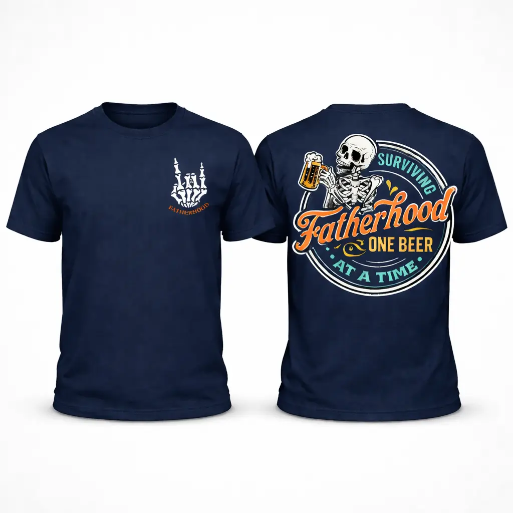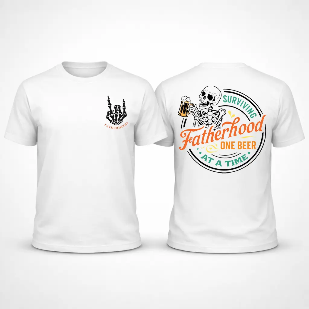 Funny Dad Shirt Surviving Fatherhood One Beer at a Time, Skeleton Drinking Beer Graphic Tee, Fathers Day Gift Idea, Vintage Cotton Unisex Shirt Hot Trendd
