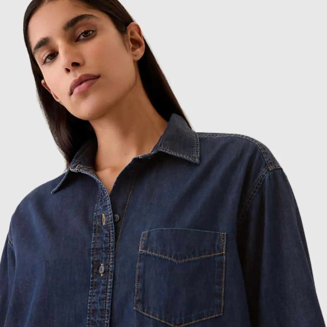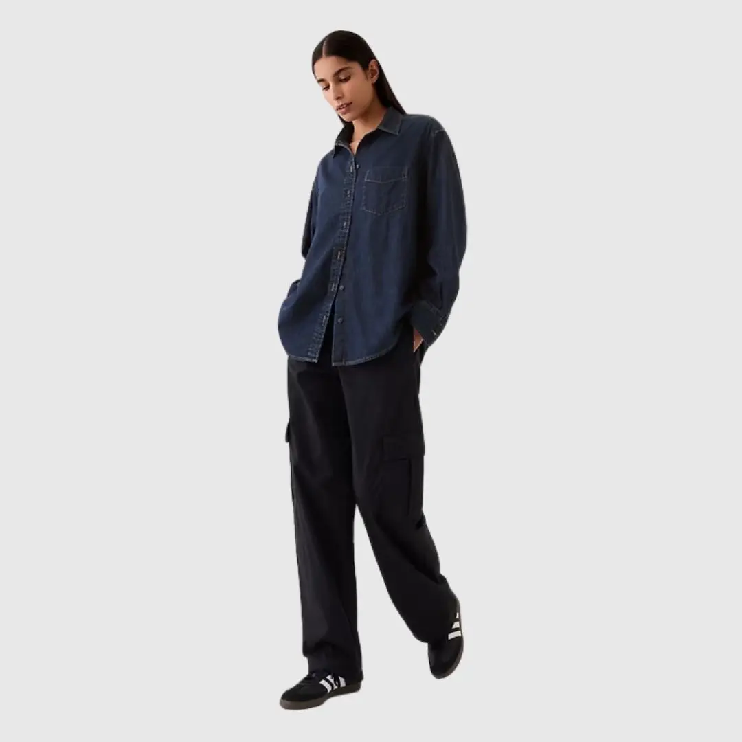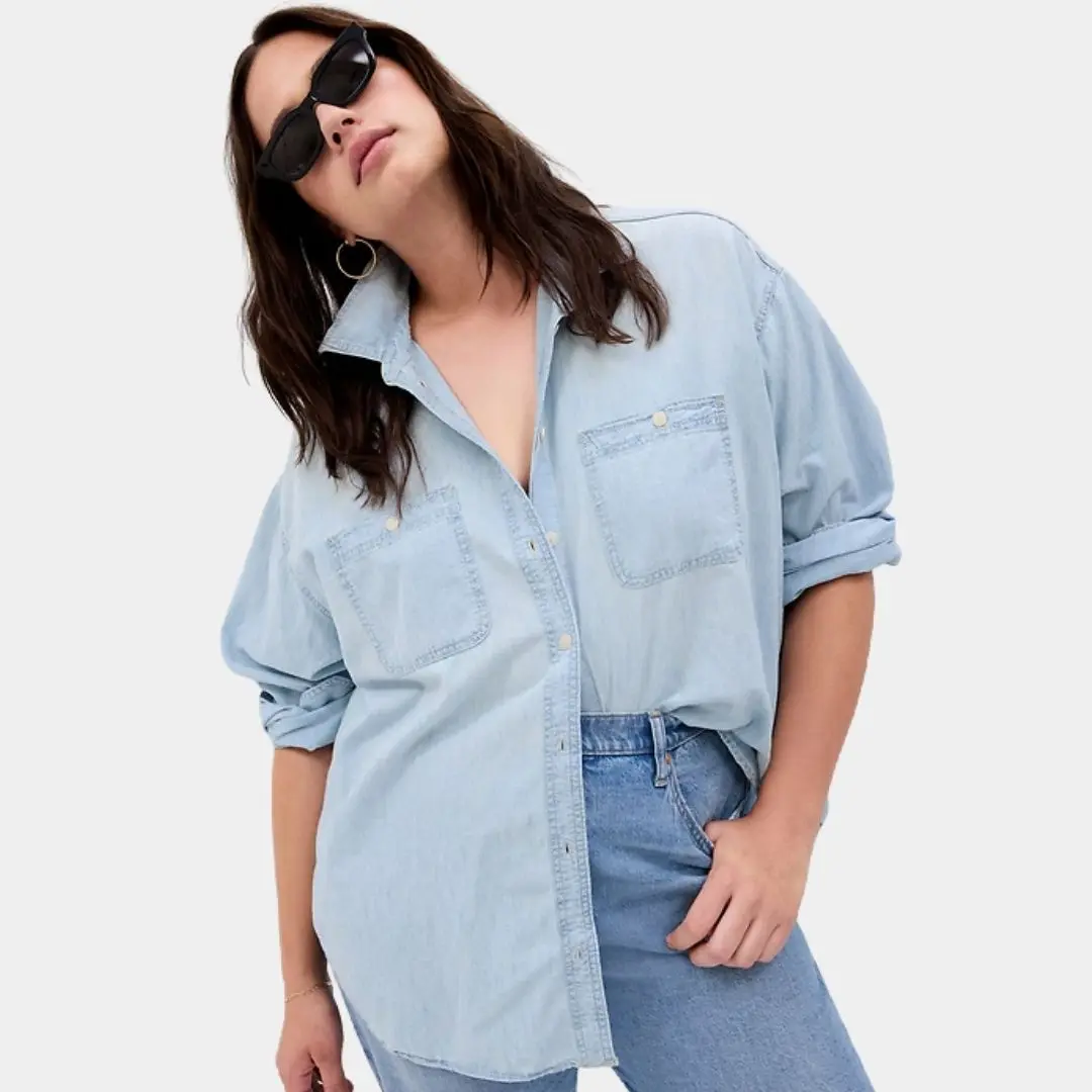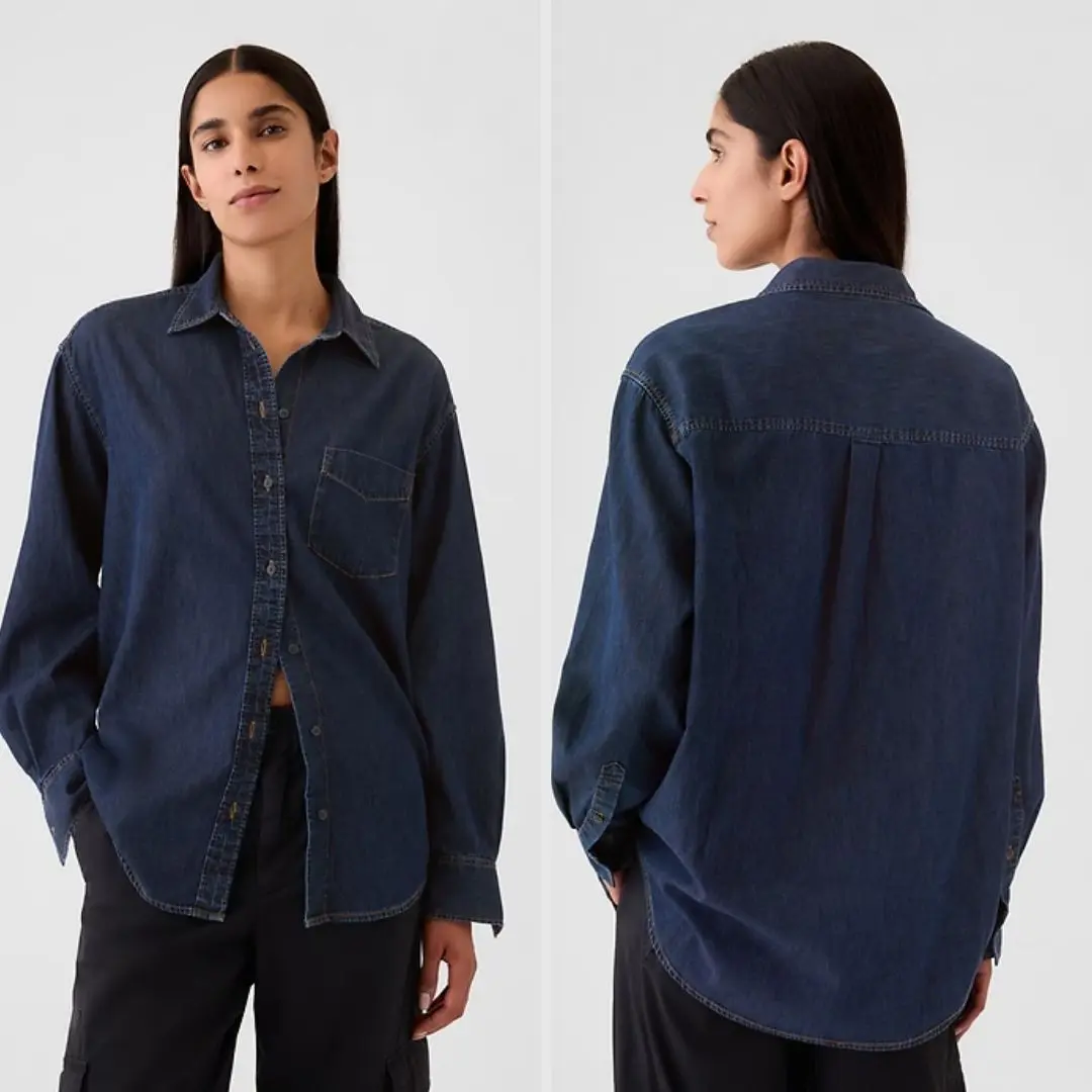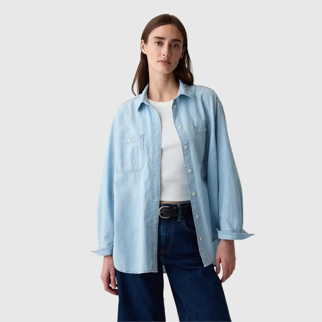 GAP Oversized Denim Shirt Unisex – Vintage Button Down Chambray Shirt, Casual Streetwear Long Sleeve, Loose Fit Everyday Shirt