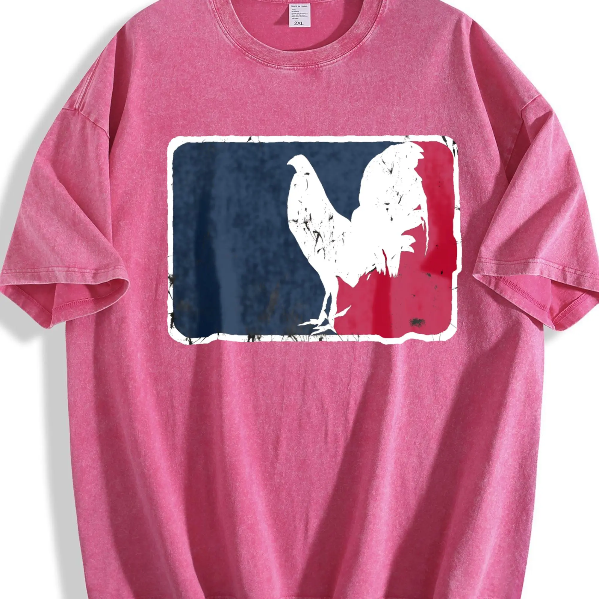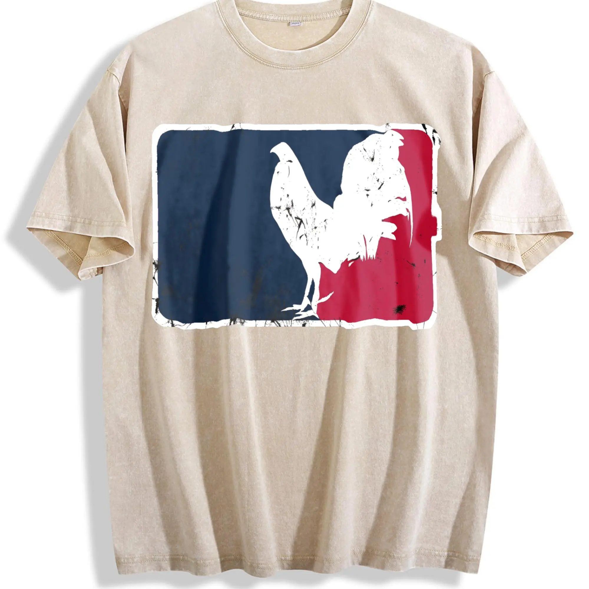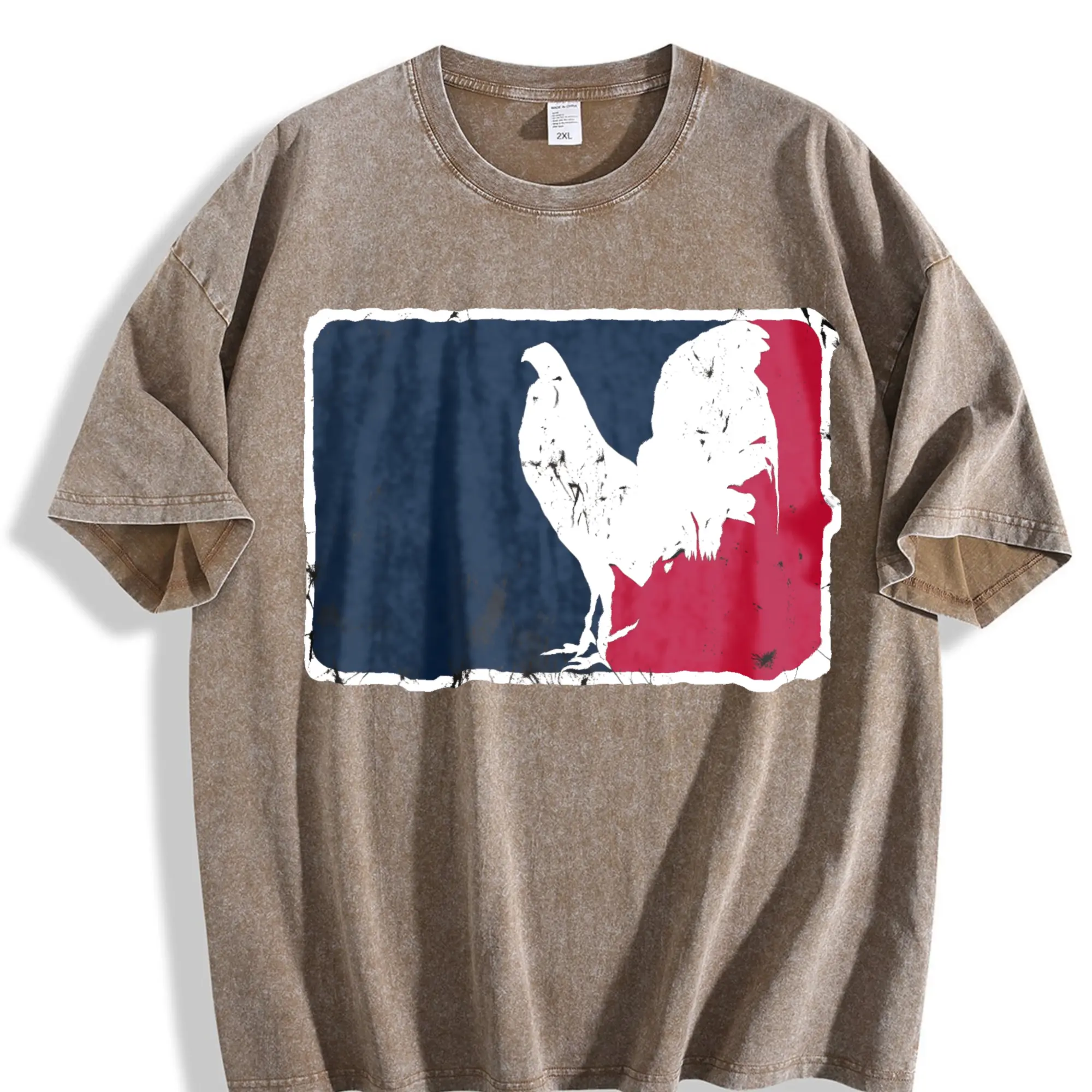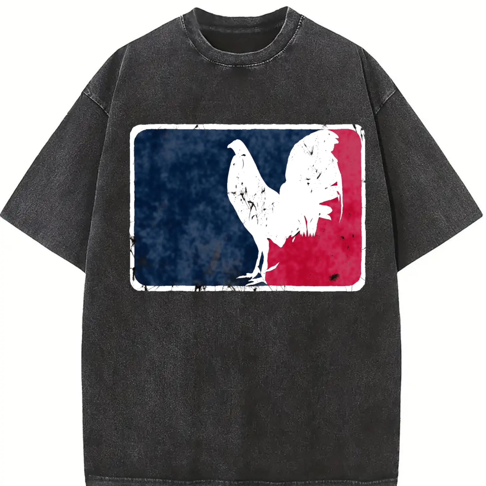 Vintage GameFowl Major League Rooster Graphic T-Shirt, 100% Cotton, Black with Red & Blue Stripes, Casual Crew Neck for Parties, Sports & Outdoor Activities