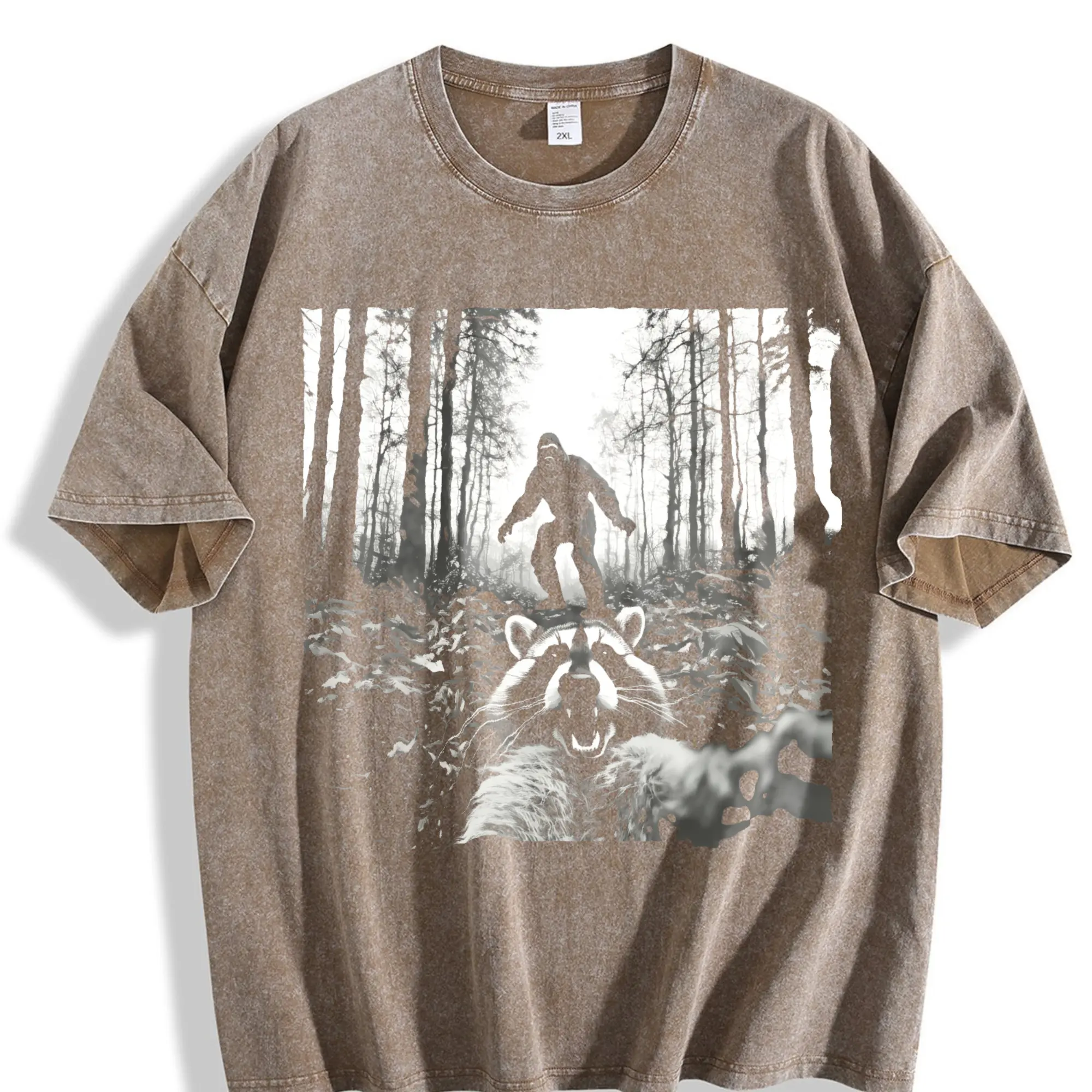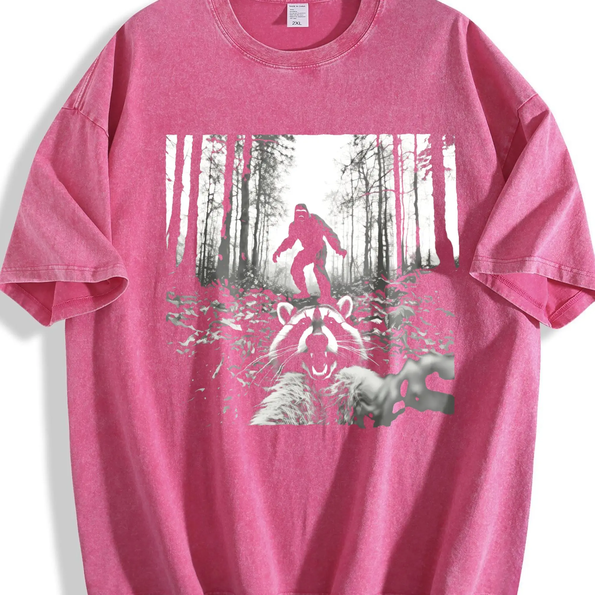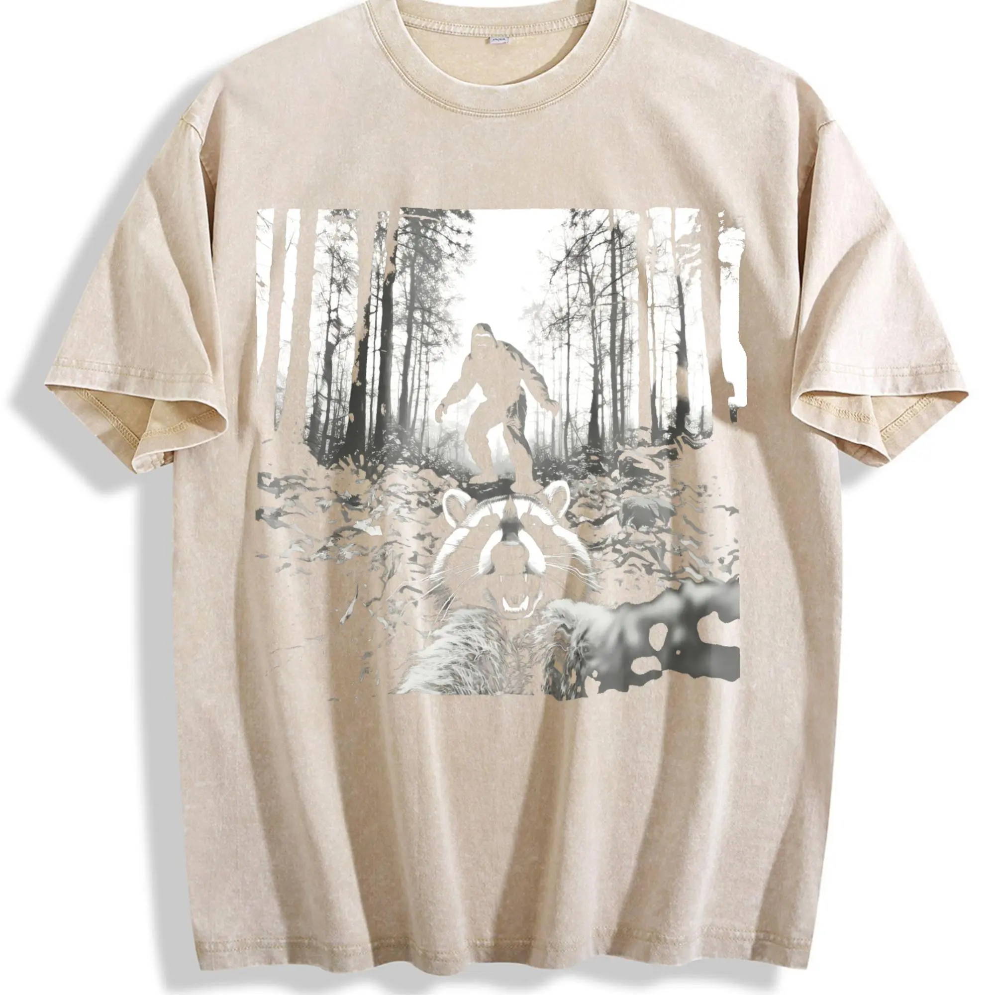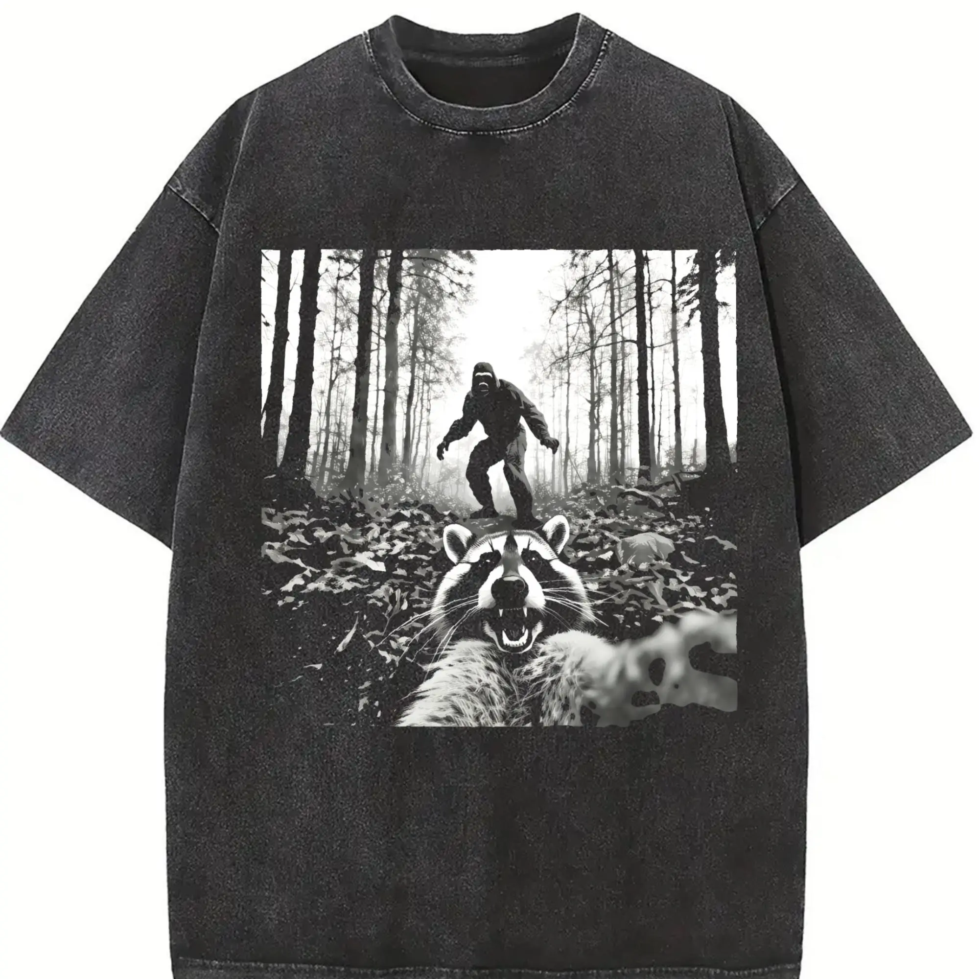 Unisex Funny Raccoon Selfie with Sasquatch Bigfoot T-Shirt Casual Top