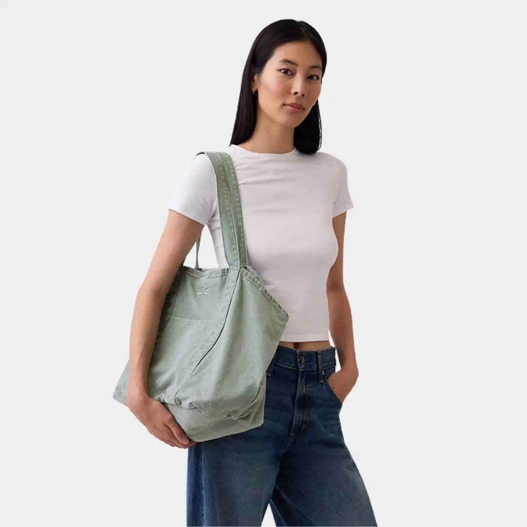 GAP Vintage Logo Tote Bag Unisex – Large Canvas Shoulder Bag, Casual Streetwear, Everyday Carry, School Work Travel Bag