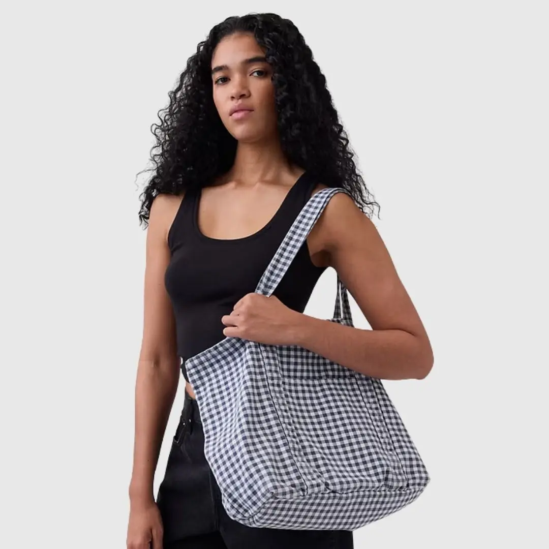 Elevate your style with this versatile tote bag. Crafted from soft, overdyed cotton, it's perfect for casual streetwear. Ideal for everyday carry, school, work, or travel. The bag features shoulder straps and a snap button closure for secure storage. It includes outer and inner patch pockets for added convenience. The embroidered mini Gap arch logo adds a classic touch. Available in assorted colors and prints.