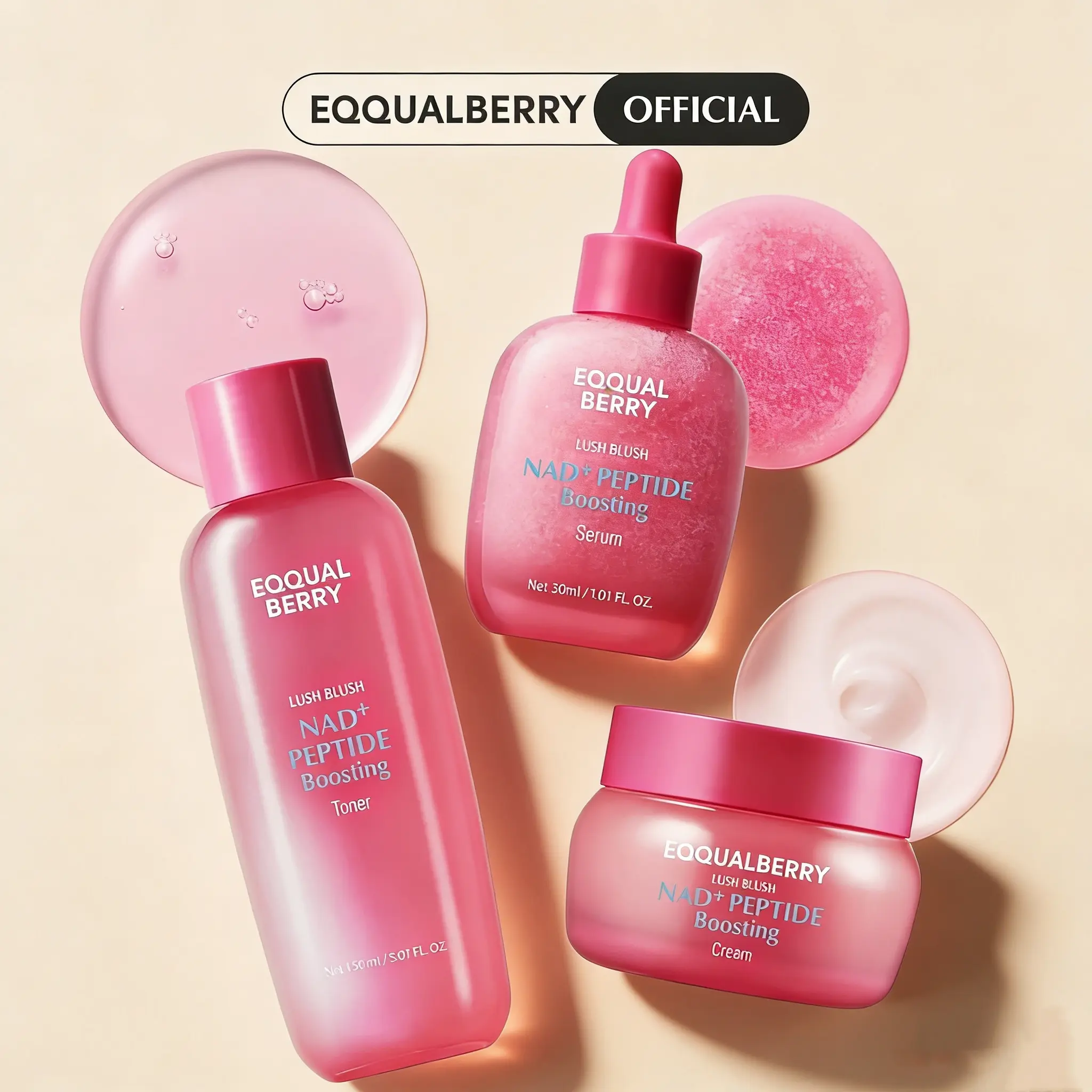 EQQUALBERRY DUO NAD+ Peptide Boosting Cream (2-Pack) – NAD+ 5% & 13 Peptides Anti-Aging Face & Body Cream | Firming & Lifting Pink Neck Cream for Sagging Skin, 1.69 fl.oz / 50ml Each